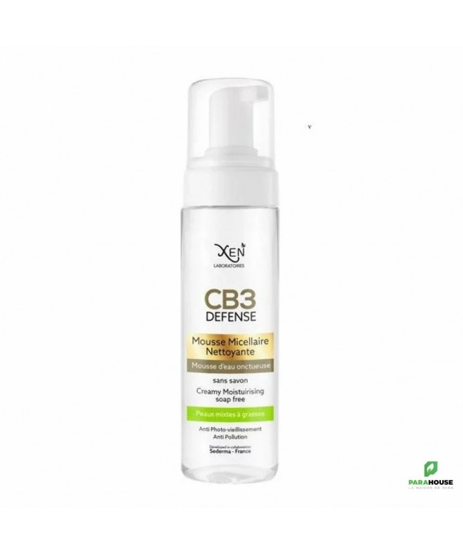 XEN CB3 DEFENSE MOUSSE MICELLAIRE NETTOYANTE PEAUX GRASSES 200ML XEN CB3 DEFENSE MOUSSE MICELLAIRE PEAUX MIXTES A GRASSES nettoie délicatement votre peau tout en éliminant les impuretés. Sa composition spéciale prévient efficacement l’apparition des imperfections. Le secret de cette mousse micellaire réside dans son jeu de textures étonnant, combinant la légèreté d’une mousse nettoyante, l’onctuosité d’une crème et la fraîcheur de l’eau. Sa texture mousse onctueuse laisse la peau parfaitement nette, fraîche et douce. Composition : La Mousse Micellaire Nettoyante CB3 Défense est composée d’ingrédients soigneusement sélectionnés pour prendre soin de votre peau, tels que l’eau, le magnésium laureth sulfate, le disodium laureth sulfosuccinate, le cocoamphoacetate, le sucrose cocoate, le coco-glucoside, l’EDTA, la niacinamide, la vitamine C stabilisée, le coenzyme Q10, le céramide, le chlorure de sodium, l’extrait d’aloe vera, la MIT/CMIT et le parfum. La vitamine C stabilisée et le coenzyme Q10 sont des antioxydants puissants qui aident à protéger votre peau contre les dommages des radicaux libres, tandis que l’extrait d’aloe vera et le céramide hydratent et apaisent votre peau. La niacinamide aide à réduire l’apparence des pores, tandis que la MIT/CMIT aide à préserver la fraîcheur de la mousse. Conseils d'utilisation: Pour l’utiliser, il vous suffit d’appliquer une petite quantité de mousse sur votre peau légèrement humide, matin et/ou soir, et de masser doucement en évitant le contact avec les yeux. Ensuite, rincez à l’eau claire pour retirer tous les résidus de la mousse.