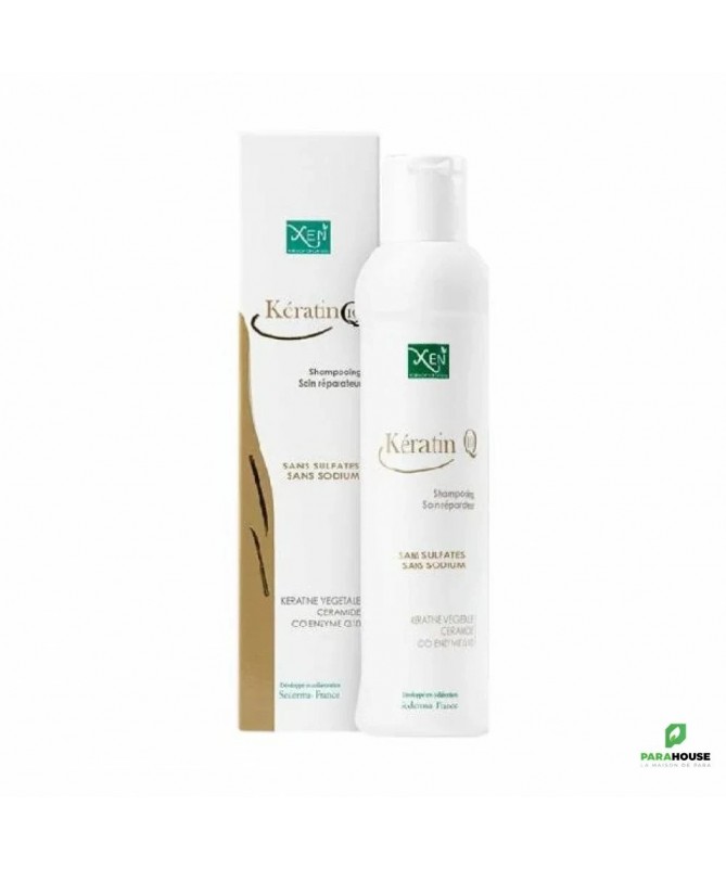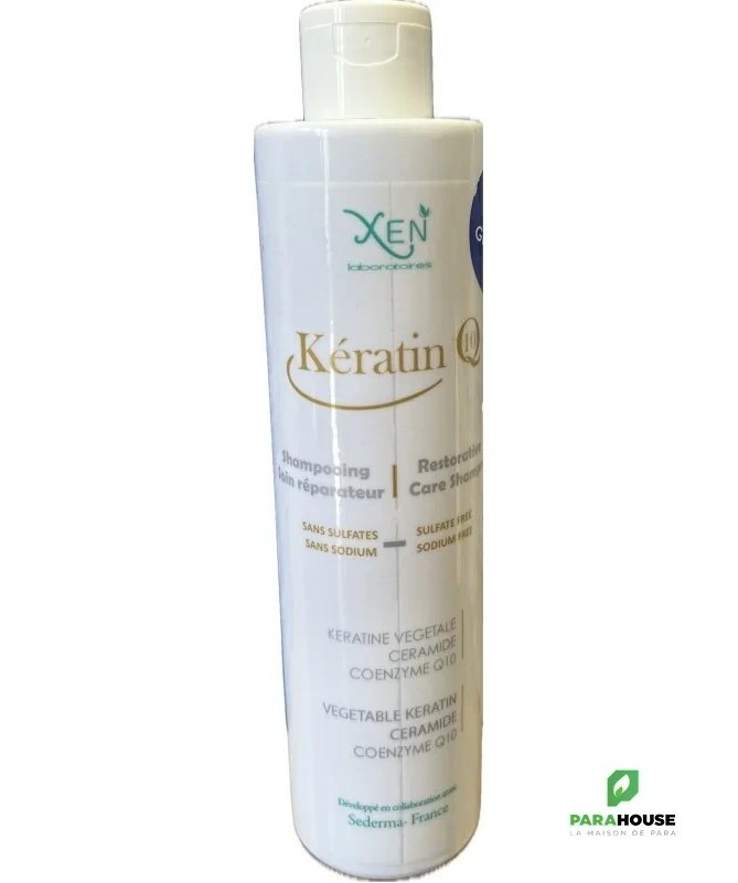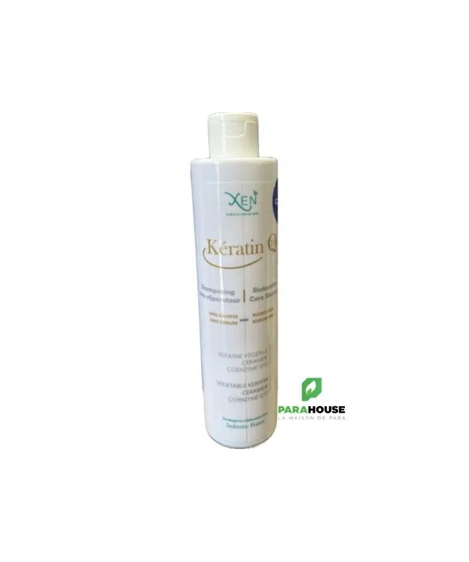 XEN KERATIN Q10 SHAMPOOING 200ML XEN KERATIN Q10 SHAMPOOING conditionne et renforce les cheveux abîmés, cassants, ou ternes. Le produit prévient l'apparition de cheveux secs ou cassants. Par sa formule aux ingrédients actifs issus d'une molécule naturelle hydratante et réparatrice des cheveux dénaturée par le thermo-choc thermique provoqué par le lissage. La kératine végétale, un combleur d’excellence de la fibre capillaire, permet de renforcer et réparer les cheveux abîmés. Le céramide, quant à lui, joue le rôle de véritable ciment intercellulaire qui maintient la cohésion des cellules capillaires et renforce la structure des cheveux. Enfin, la coenzyme Q10, un antiradicalaire, agit pour protéger les cheveux des agressions externes et stimule la racine des cheveux pour activer la production de deux kératines qui diminuent avec l’âge. RESULTATS : Lave en douceur les cheveux fragiles. Répare les cheveux défrisés, secs, cassants, et ternes. Entretient les cheveux ayant effectué un lissage à la kératine. Composition : La kératine végetale combleur d'excellence de la fibre capillaire, La céramide , véritable ciment intercellulaire, La coenzyme Q10 antiradicalaire, protège les cheveux des agressions externes et stimule la racine des cheveux , pour activer la production des deux kératines qui diminue avec l'age. sans sulfates sans sodium Conseils d’utilisation : Pour utiliser le produit, appliquez une noisette sur les cheveux mouillés, en insistant de la mi-longueur à la pointe. Laissez agir entre 3 et 5 minutes, puis peignez délicatement vos cheveux pour les démêler avant de rincer à l’eau tiède. Utilisez 1 à 2 fois par semaine pour des résultats optimaux.