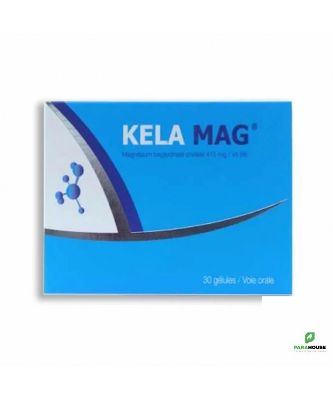 KELA MAG 30 capsules Le magnésium est un élément indispensable à la production de vitamines et enzymes. Des dépressions nerveuses, des contractures musculaires et des maux de dos chroniques peuvent être causés par des carences en magnésium. Le KELA MAG contient notre formule de magnésium avec la plus haute absorption digestive sous la forme de chélate d'acide aminés enrichi avec le Vitamine B6 qui coopère avec le magnésium dans les réactions enzymatiques.