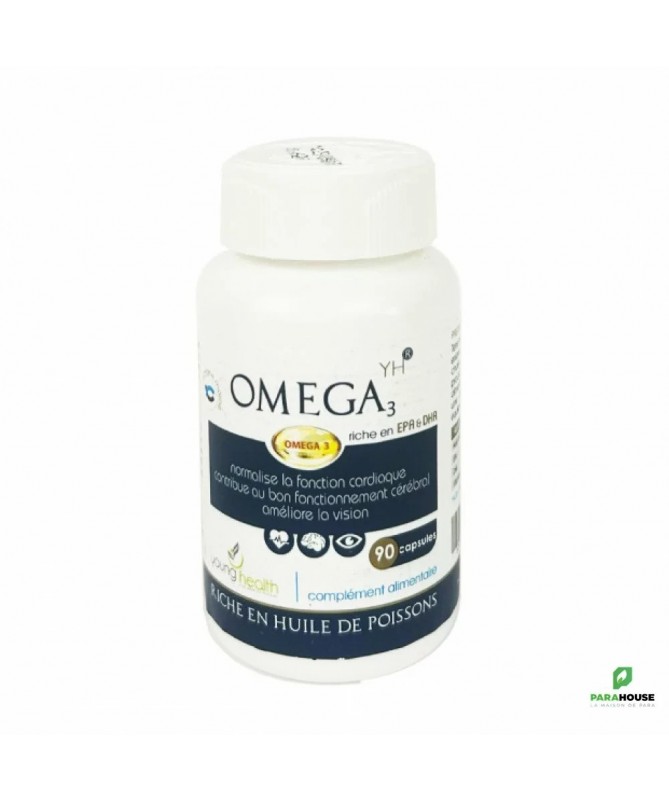 YOUNG HEALTH OMEGA 3 - 90 Gelules OMEGA 3 ont indispensables à notre organisme ou nos gélules présente un complexe bien performant et idéalement équilibré en acides essentiels qui voient de jour en jour de nouvelles études vanter leur mérites que ce soit pour le coeur ou pour l’humeur YOUNG HEALTH OMEGA 3 sont particulièrement bénéfiques au bon fonctionnement global grâce aux huiles de poisson des mers froides les plus riches huiles en Oméga 3 .