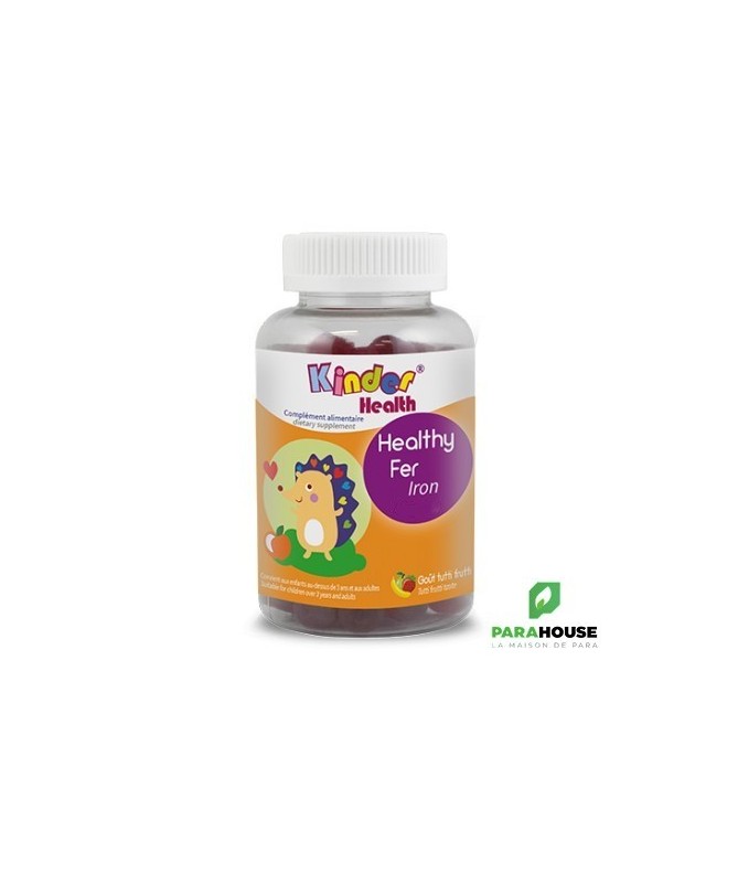 La carence en fer est le problème nutritionnel le plus répandu chez les enfants.Cette carence apparaît graduellement et peut conduire à l’anémie ferriprive.Kinder Healthy Fer est le moyen qui lutte contre cette carence: les gommes qui constituent la source de nutriment et qui apporte bien évidemment le fer à l’organisme en favorisant son absorption à travers les vitamines essentielles.Ce produit peut également convenir à l'adulte de plus de 15 ansPot avec sécurité enfant.Texture : 30 GUMMIESPropriétés :Gout tutti fruttiConseils d'utilisation :de 3 à 6 ans : mâcher 1 à 3 gommes par jour de 7 à 12 ans : mâcher 4 à 6 gommes par jour.Composition :Sirop de glucose - sucre- agent gélifiant ,arome naturel, agent acidifiant, citrate de sodium, jus concentré de carotte noire.