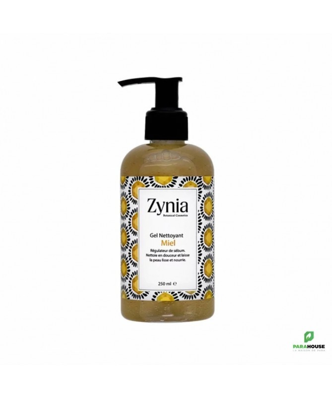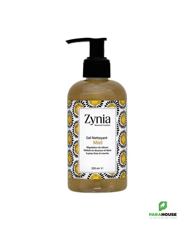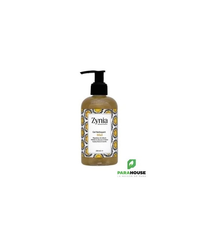 ZYNIA Gel Nettoyant au Miel 250ML ZYNIA Gel Nettoyant au Miel est un nettoyant visage doux à base de vrai miel d’eucalyptus sauvage afin de nettoyer et purifier votre visage. A 98% Naturel, sans parabens, sans tensioactifs agressifs, ZYNIA Gel Nettoyant permet de reguler le sebum. Résultat: une peau douce et bien nettoyée Composition : Aqua, Mel/Honey,Aloe barbadensis leaf juice, Coco-amidopropyl betain, Glycerin, Xanthan gum, fragrance, Benzyl Alcohol, Dehydroacetic Acid, Citric acid Conseils d'utilisation : Sur une peau sèche appliquer 3 pressions de pompes, bien masser votre visage ensuite laver à l’eau.