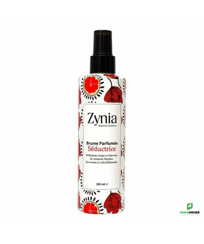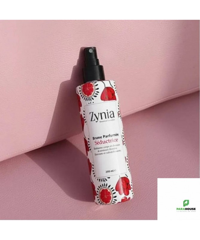 ZYNIA Brume Parfumée Séductrice 250ML ZYNIA Brume Parfumée Séductrice est un body splash riche en glycérine pour rafraîchir et hydrater la peau après ou pendant l’exposition au soleil. ZYNIA Brume, rafraichissante et enivrante, embaume le corps et les cheveux de senteurs florales Sans alcools et parabens. 99% naturelle Composition : Aqua, Glycerin, PEG 40 hydragenated castor oil, Fragrance
