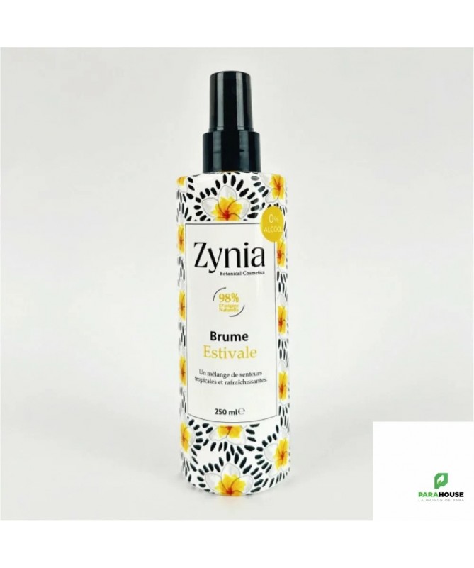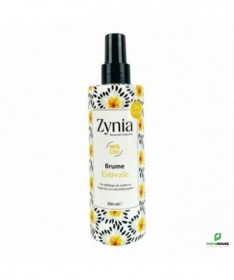 ZYNIA Brume Parfumée au Monoi 250ML ZYNIA Brume Monoi est un body splash riche en glycérine pour rafraîchir et hydrater la peau après ou pendant l’exposition au soleil. ZYNIA Brume Parfumée au Monoi, rafraichissante et hydratante, embaume le corps et les cheveux de senteurs estivales Sans alcools et parabens. 99% naturelle Composition : Aqua, Glycerin, PEG 40 hydragenated castor oil, Fragrance