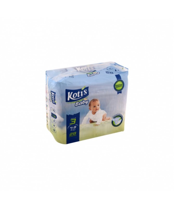 Les couches Bébé KOTIS Taille 3 (4–9 kg) assurent un confort optimal et une protection efficace pour les bébés. Leur structure douce et absorbante permet de garder la peau sèche, jour et nuit, pour un bien-être maximal.