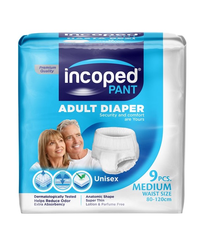 Couches Adultes Culotte Incoped Unisexe - Paquet : 7 pièces - Taille : X Large - Matériaux : Coton biologique - Absorption : Couches avec indicateur d'humidité - Taille : 120-170 cm - Capacité d’absorption exceptionnelle - Couches adulte hypoallergéniques - Ultra absorbantes - Sans parabène, sans latex, sans BPA - Offre un confort maximal à l’utilisateur - Idéal pour la peau sensible - Double protection - Antifuites