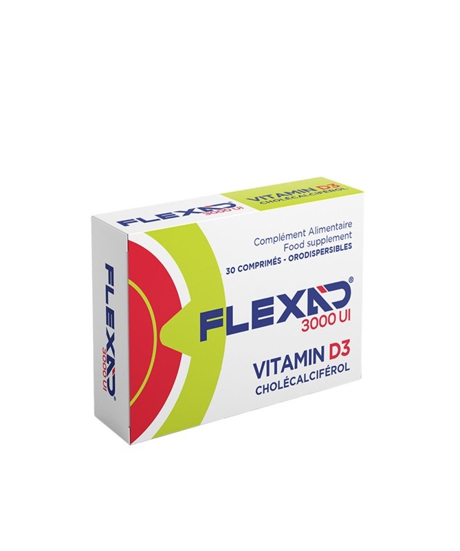 FLEXAD 3000 UI peut être utilisé aussi longtemps que nécessaire. Une consommation régulière est recommandée sauf avis contraire du médecin. Comprimé orodispersible – ne pas mâcher.
