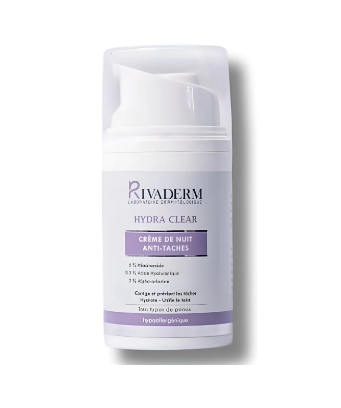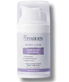 IVADERM Hydra Clear Crème Hydra Anti-Taches 50 g est un soin visage hydratant conçu pour atténuer les taches pigmentaires et uniformiser le teint. Elle agit sur les irrégularités cutanées tout en apportant une hydratation optimale, pour une peau plus lumineuse et visiblement homogène.