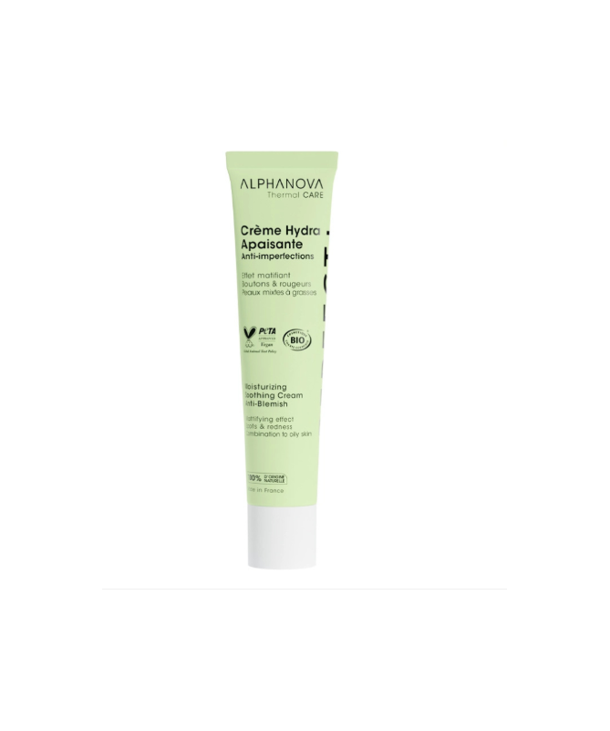 Spécialement conçue pour les peaux mixtes à grasses sujettes aux boutons, rougeurs et points noirs, cette crème certifiée bio offre une action complète pour apaiser, réguler et matifier sans agresser la peau. Une composition clean 100% d’origine naturelle associe des actifs dermatologiques innovants à des ingrédients apaisants et équilibrants reconnus. Tube avec canule pour une application précise sur les zones ciblées.