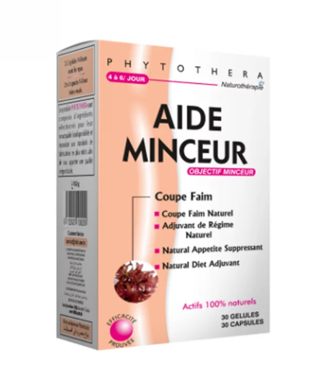 L''Agar Agar est un mélange d''algues asiatiques qui possède un fort pouvoir gélifiant à une température supérieure à 36°C. . Phytothéra aide minceur a une action au niveau de l''estomac qu''il rempli en gélifiant l''eau : d''où l''effet coupe faim. Le gel ainsi formé permet d''obtenir une sensation de satiété.