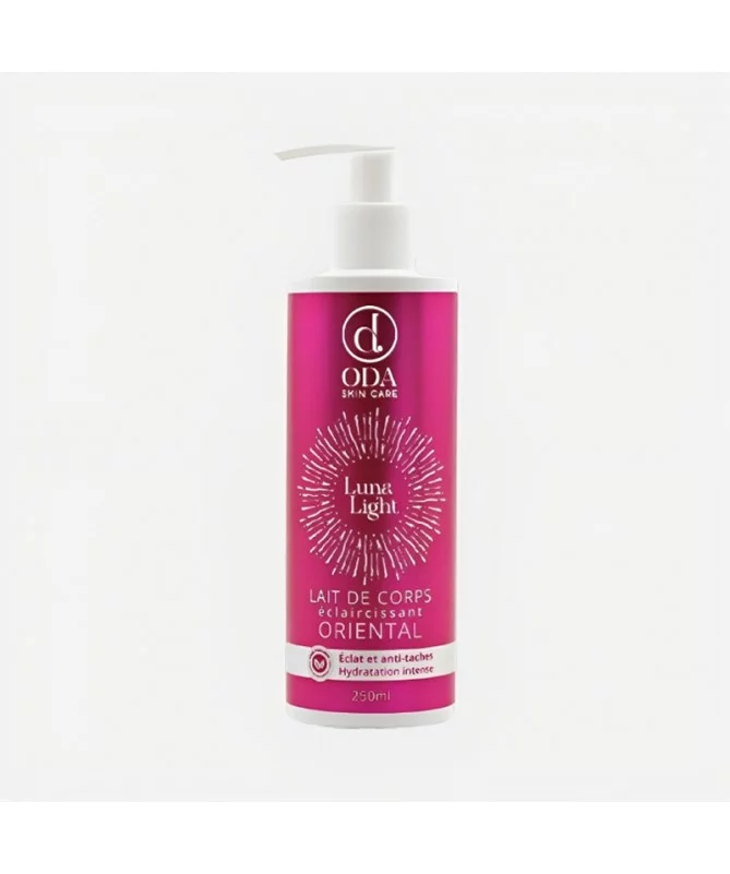 Le lait corporel Moonlight d'ODA, éclaircissant et enrichi en actifs, hydrate, nourrit et uniformise le teint. Idéal pour les peaux ternes, métisses ou sujettes à l'hyperpigmentation, il laisse la peau douce, souple et lumineuse.