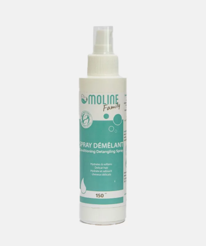 Spray démêlant sans rinçage qui libère les nœuds, définit les boucles et dompte les frisottis.