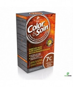 3 CHÊNES COLOR & SOIN COLORATION - 7C BLOND TERRE CUIVRÉ Le numéro 1 de la coloration permanente végétale. Color Soin 7C est doux pour les cheveux, simple d'utilisation et résiste aux shampooings. Le Laboratoire les 3 CHÊNES® a développé une ligne de coloration permanente 100% efficace et naturelle : sans silicone sans ammoniaque, sans résorcine, sans paraben.. Color et Soin 7C est Testée dermatologiquement, Color&Soin est prescrite par des dermatologues. Sans ammoniaque, Sans résorcine, Sans paraben, ni silicone 100% couverture cheveux blanc 100 % éclat et brillance Résitance aux U.V. et au chlore Color soin : 28 teintes Etui contenant : un flacon de 60 mL de teinture aux extraits végétaux un flacon de 60 mL de fixateur un sachet de 15 mL de baume capillaire une paire de gants protecteurs une notice explicative COMMENT APPLIQUER COLOR ET SOIN : PREPARATION Placez une serviette sur vos épaules pour protéger vos vêtements, puis enfilez la paire de gants. Versez le contenu de la Teinture aux extraits végétaux COLOR & SOIN dans le flacon Fixateur de couleur. Revissez bien le bouchon du flacon applicateur et agitez-le jusqu’à obtenir un mélange parfaitement homogène. Dévissez la pointe du bouchon du flacon applicateur, et commencez l’application immédiatement. APPLICATION Séparez les cheveux en quatre zones à l’aide d’un peigne et appliquez soigneusement sur les racines, grâce à l’embout applicateur. Répartissez ensuite le mélange colorant sur toute la longueur de vos cheveux. Utilisez la totalité du produit pour la coloration. Malaxez légèrement pour bien imprégner la totalité des cheveux. Précautions d’emploi Les colorants capillaires peuvent provoquer des réactions allergiques sévères. Lire et suivre attentivement les instructions. Ce produit n’est pas destiné à être utilisé sur les personnes de moins de 16 ans. Les tatouages temporaires noirs à base de henné peuvent augmenter les risques d’allergie. Ne vous colorez pas les cheveux si : Vous présentez une éruption cutanée sur le visage ou si votre cuir chevelu est sensible, irrité ou abîmé. Vous avez déjà fait une réaction après avoir coloré vos cheveux. Vous avez fait par le passé une réaction à un tatouage temporaire noir à base de henné. Vous avez déjà fait une coloration à base de henné. Color&soin® est incompatible avec le henné. En cas de sensation de chaleur, picotements et/ou démangeaisons lors de la coloration, rincez immédiatement. Porter des gants appropriés. Evitez toute application du produit hors du cuir chevelu. Ne pas employer pour la coloration des cils et des sourcils. Evitez le contact du produit avec les yeux. Rincer immédiatement les yeux si le produit entre en contact avec ceux-ci. Préparez et appliquez le mélange de préférence dans un endroit bien aéré.