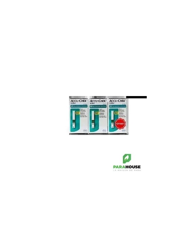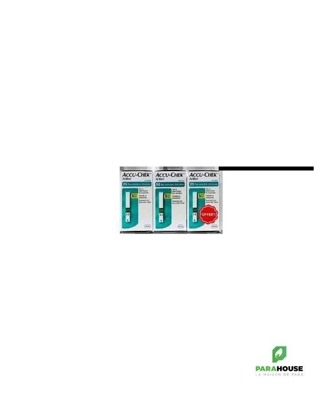 Description:Tous les lecteurs de glycémie de la famille Accu-Chek Active utilisent des bandelettes conçues aux personnes qui ont besoin d'un système instantané et simple d'application de sang facile.Les larges bandelettes touchables nécessitent un petit échantillon de sang de 1-2 micro litres.Alerte d'expiration: pour vous aider à garantir des résultats fiables, le lecteur vérifie la date d'expiration de la bandelette par le biais de la puce de calibration et vous alerte en cas où la bandelette est déjà expirée.Détection du sous-dosage: le système vous indique q'une quantité additionnelle de sang est requise.Possibilité de ré-dosage: avec les bandelettes Accu-Chek Active, le ré-dosage dans le lecteur est possible dans un délai de 5 secondes.1 A vous de choisir Vous pouvez appliquer le sang sur la bandelette à l'intérieur ou en dehors du lecteur. Choisissez l'option qui vous convient.Double Contrôle visuel: ceci est possible en comparant la coloration de la fenêtre de contrôle de la bandelette avec les couleurs qui se trouvent sur le flacon.Conseils: Quand vous prenez une bandelette du flacon, n'oubliez pas de bien le fermer immédiatement en vue de conserver la qualité de la bandelette. 1 Le ré-dosage en dehors du lecteur est possible dans 15 secondes.