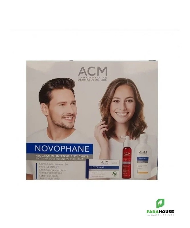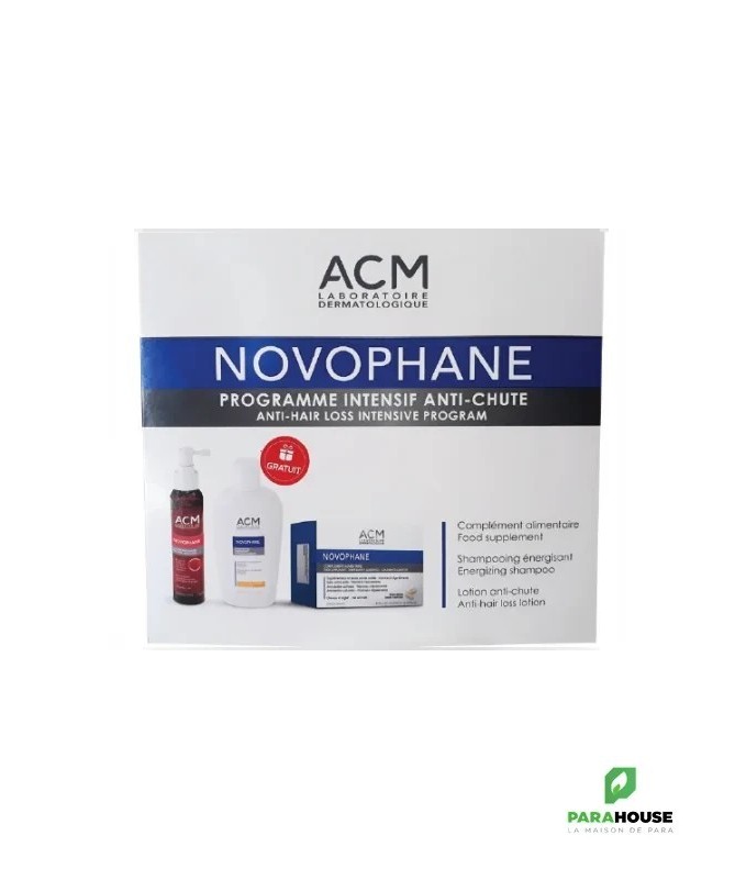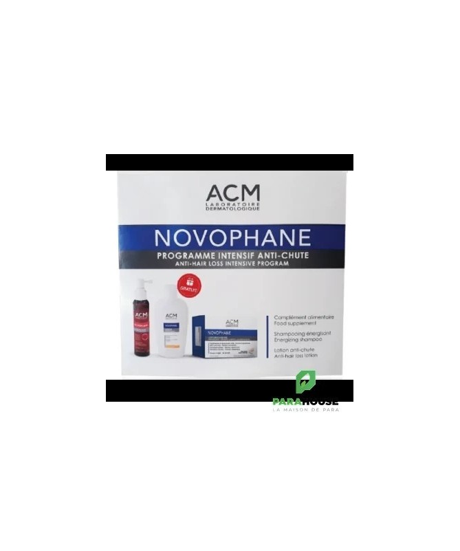 Le Coffret NOVOPHANE est un programme intensif complet anti-chute. Ce Coffret est composé de : 1 NOVOPHANE Complément Alimentaire 60 Gélules 1 NOVOPHANE LOTION Anti Chute 100ML 1 NOVOPHANE SHAMPOOING ÉNERGISANT 200ML