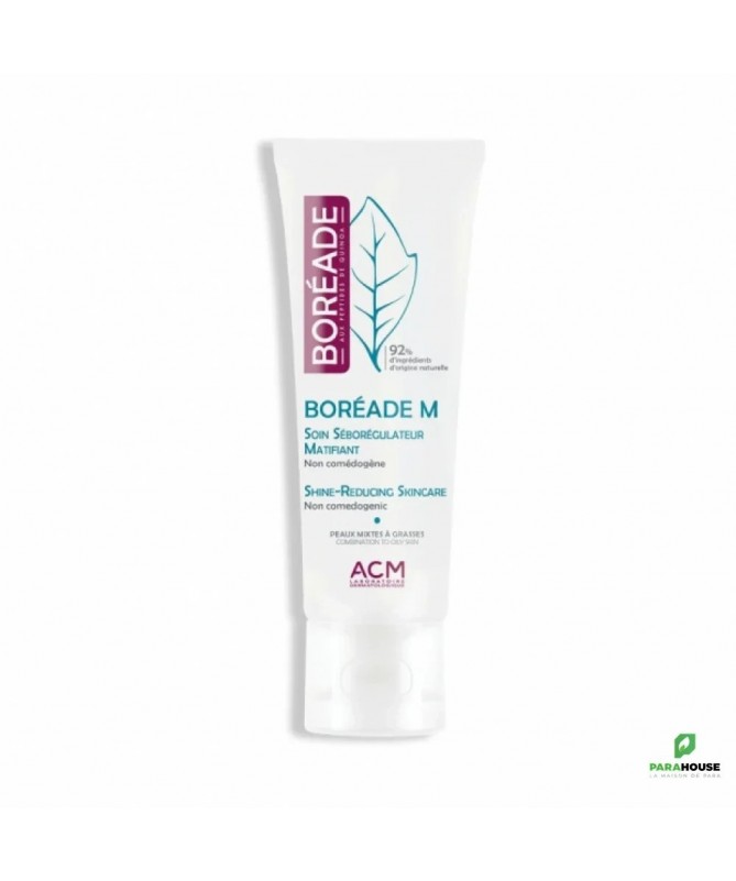 ACM BORÉADE M SOIN SÉBORÉGULATEUR MATIFIANT 40ML ACM BORÉADE M SOIN SÉBORÉGULATEUR MATIFIANT hydrate et aide à affiner l'apparence de la peau. 92% des ingrédients naturels aident à dompter les peaux grasses avec une formule non grasse et légère pour les peaux mixtes à grasses. Grâce au Complexe S.M.A, cet hydratant aide à apaiser et à nourrir la peau tout en combattant la brillance. Profitez d'une peau qui se sent calme, douce et bien hydratée. BOREADE M est une crème de soin quotidien à triple action pour les peaux grasses. Son complexe S.M.A resserre les pores dilatés et limite l'excès de sébum, absorbe l'excès de sébum à l'intérieur des pores. Grâce à ses actifs, elle apaise rapidement les rougeurs, la sensibilité et les irritations. Composition : Aqua (Water), Cetyl Palmitate, Cocoglycerides, Hydrolyzed Chenopodium Quinoa Seed, Dicaprylyl Carbonate, Glycerin, Propanediol Dicaprylate, Cetyl Alcohol, Oryza Sativa (Rice) Starch, Glyceryl Stearate, Butyl Avocadate, 1,2-Hexanediol, Nylon-6, Zinc Gluconate, PEG-75 Stearate, Capryloyl Glycine, Xanthan Gum, Cera Alba (Beeswax), Potassium Cetyl Phosphate, Glyceryl Caprylate, Ceteth-20, Steareth-20, Parfum (Fragrance), Sodium Hydroxide, Citric Acid, Cetearyl Alcohol,, Maltodextrin, Propyl Gallate. Conseils d'utilisation : Il est conseillé d'appliquer BOREADE SOIN MATIFIANT matin et soir sur le visage propre et sec.