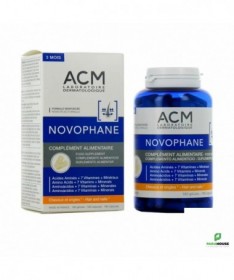 NOVOPHANE Complement Alimentaire - Programme Complet 3 Mois Le complément alimentaire cheveux Novophane gelules permet de fortifier la fibre capillaire tout en solidifiant les ongles. Riche en Biotine (également appelée vitamine B8) et en Zinc qui contribuent au maintien d’une belle chevelure. Le Zinc contribue aussi au maintien de beaux ongles. Composition : Cystine, Méthionine, agent de charge : Phosphate Dicalcique, Gluconate de Fer, Oxyde de Magnésium, Vitamine C (Acide ascorbique), Gluconate de zinc, Extrait de Prêle Partie Aerienne (Equisetum arvense.L), Vitamines E (Acétate de DL-alpha-tocophéryle), B3 (Niacine), B5 (D-panthoténate de calcium), B6 (Chlorhydrate de pyridoxine), B2 (Riboflavine), Biotine (D-biotine), Gluconate de Cuivre, L-Arginine, Mono et Diglycérides d'acide gras, enveloppe : Gélatine Conseils d’utilisation: Il est indiqué de prendre 2 gélules de novophane 180 gélules par jour au cours d’un repas .A renouveler le traitement régulièrement au cours de l’année et en cas de besoin. Ne pas dépasser la dose journalière recommandée. A conserver à l’abri de la chaleur et de l’humidité.