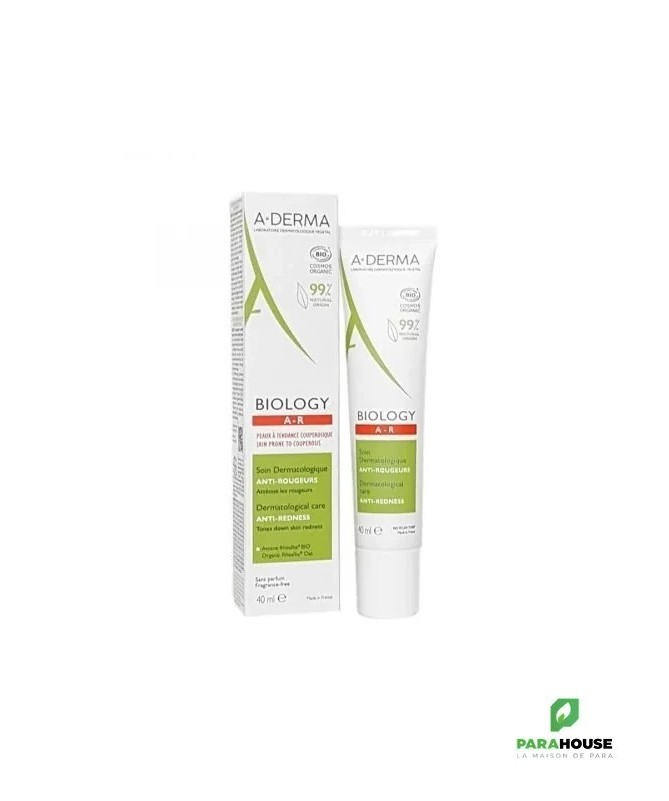 ADERMA BIOLOGY AR Soin Dermatologique Anti rougeurs 40ML ADERMA BIOLOGY AR est un traitement BIO anti rougeurs adapté aux peaux à tendance couperosique et permet de les hydrater, rééquilibrer et apaiser. Ce produit, BIOLOGY AR Soin Dermatologique Anti Rougeurs, est une innovation du marché des soins des peaux sensibles. Il associe le principe le plus actif de la gamme BIOLOGY (Sève d'Avoine Rhealba® BIO) à l'Extrait de Mandarine. Ce soin visage anti-rougeurs est à 99% naturel et ne contient que les ingrédients essentiels pour assurer une tolérance optimale Sa texture fluide, effet frais, non comédogène, peut être utilisée seule ou mélangée aux crèmes dermatologiques hydratantes BIOLOGY pour un soin sur mesure. Bénéfices de ADERMA BIOLOGY AR Soin Dermatologique Anti rougeurs : HYDRATE : riche en Sève d’Avoine Rhealba® BIO, actif breveté au pouvoir hydratant (booste de +83 % la production naturelle d’Acide Hyaluronique, le soin dermatologique anti-rougeurs offre une hydratation 24h ATTÉNUE : riche en Extrait de Mandarine, il apaise, atténue et limite la réapparition des rougeurs installées ou diffuses. APAISE : apaise immédiatement et durablement les sensations d’inconfort et d’échauffement Efficacité : -40% d'intensité de flush dès 1 mois d'application -51% de rougeurs dès le 1er jour d'application 24h d'hydratation Composition : WATER (AQUA). GLYCERIN. DICAPRYLYL CARBONATE. PENTYLENE GLYCOL. C14-22 ALCOHOLS. BUTYLENE GLYCOL. HELIANTHUS ANNUUS (SUNFLOWER) SEED OIL (HELIANTHUS ANNUUS SEED OIL). BEHENYL ALCOHOL. CITRUS AURANTIUM DULCIS (ORANGE) FRUIT WATER (CITRUS AURANTIUM DULCIS FRUIT WATER)*. SODIUM STEAROYL GLUTAMATE. ALOE BARBADENSIS LEAF JUICE POWDER*. AVENA SATIVA (OAT) FLOWER/LEAF/STEM JUICE (AVENA SATIVA FLOWER/LEAF/STEM JUICE)*. C12-20 ALKYL GLUCOSIDE. CITRIC ACID. CITRUS RETICULATA (TANGERINE) PEEL EXTRACT (CITRUS RETICULATA PEEL EXTRACT). GLYCERYL CAPRYLATE. SCLEROTIUM GUM. SODIUM BENZOATE. TARAXACUM OFFICINALE (DANDELION) RHIZOME/ROOT EXTRACT (TARAXACUM OFFICINALE RHIZOME/ROOT EXTRACT). TOCOPHEROL. XANTHAN GUM 99 % d'ingrédients d'origine naturelle Certifié COSMOS ORGANIC Conseils d'utilisation : Il est recommandé d'appliquer ADERMA BIOLOGY AR matin et/ou soir sur peau nettoyée. Visage et cou. Selon les besoins de votre peau, le soin dermatologique anti-rougeurs peut-être utilisé en cure ou mélangé (1 à 3 gouttes) à votre crème dermatologique hydratante BIOLOGY pour une texture sur-mesure.