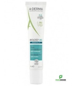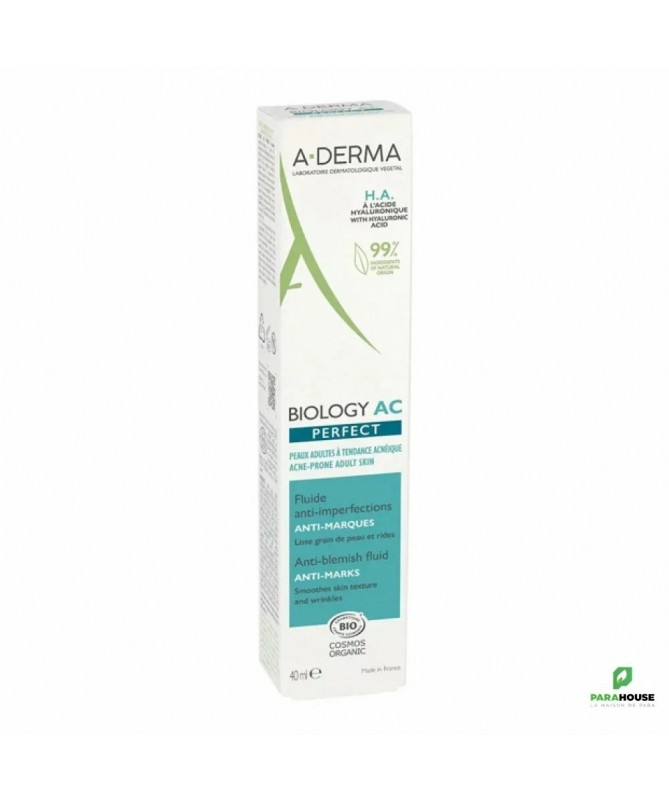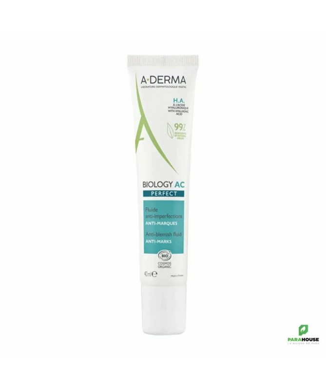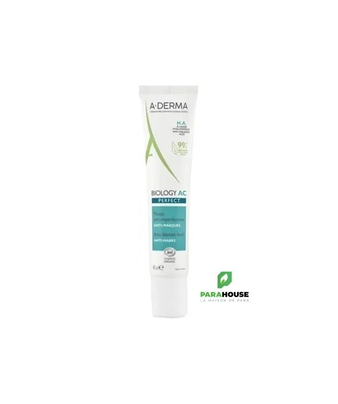 ADERMA BIOLOGY AC PERFECT Fluide Anti Imperfections Anti Marques 40ML ADERMA AC PERFECT Fluide est un soin 2-en-1 certifié BIO et dermatologique, anti-imperfections et anti-âge. Favorise l’élimination des boutons, des points noirs et des marques tout en corrigeant les 1ers signes de l’âge. ADERMA BIOLOGY AC PERFECT est un soin complet 2-en-1 anti-imperfections et anti-âge, dermatologique et certifié BIO : ANTI-IMPERFECTIONS, agit contre les boutons, les points noirs, les marques rouges et brunes et lisse le grain de peau. ANTI-RECIDIVE. REEQUILIBRE le microbiome. ADERMA BIOLOGY AC PERFECT est une Crème fluide légère testée en association avec les principaux traitements de l’acné topiques et oraux, elle rééquilibre le microbiome pour une action anti-récidive* et uniformise le grain de peau. Anti-imperfections et anti-âge, sa formule anti-pollution protège la barrière cutanée de la pollution, lisse rides et ridules et corrige également les 1ers signes de l’âge. Destinée aux adultes, cette crème fluide et légère au fini mat, avec un un parfum doux et végétal, compose une base de maquillage idéale. Composition: WATER (AQUA). GLYCERIN. CAPRYLIC/CAPRIC TRIGLYCERIDE. PENTYLENE GLYCOL. GLYCERYL STEARATE. CETEARYL ALCOHOL. BEHENYL ALCOHOL. MICROCRYSTALLINE CELLULOSE. LACTIC ACID. SIMMONDSIA CHINENSIS (JOJOBA) SEED OIL (SIMMONDSIA CHINENSIS SEED OIL)*. GARCINIA MANGOSTANA PEEL EXTRACT. SODIUM HYALURONATE. AVENA SATIVA (OAT) FLOWER/LEAF/STEM JUICE (AVENA SATIVA FLOWER/LEAF/STEM JUICE)*. HIBISCUS SABDARIFFA FLOWER EXTRACT. TARAXACUM OFFICINALE (DANDELION) RHIZOME/ROOT EXTRACT (TARAXACUM OFFICINALE RHIZOME/ROOT EXTRACT). ALOE BARBADENSIS LEAF JUICE POWDER*. CETEARYL GLUCOSIDE. FRAGRANCE (PARFUM). HELIANTHUS ANNUUS (SUNFLOWER) SEED OIL (HELIANTHUS ANNUUS SEED OIL). MALTODEXTRIN. SCLEROTIUM GUM. SODIUM BENZOATE. SODIUM HYDROXIDE. SODIUM STEAROYL GLUTAMATE. TOCOPHEROL. XANTHAN GUM Conseils d'Utilisation : Une texture fluide pour une application et pénétration rapide. Parfum doux et végétal Une application de ADERMA BIOLOGY AC PERFECT Fluide par jour, matin ou/et soir, selon votre routine de soin. Nettoyer préalablement le visage avec BIOLOGY-AC Gel moussant nettoyant purifiant ou BIOLOGY-AC Eau micellaire nettoyante purifiante. Appliquer BIOLOGY-AC PERFECT sur l'ensemble du visage. Eviter le contact avec les yeux. Limiter l'exposition solaire durant l'utilisation du produit ou utiliser une protection solaire. En cas de sensations d'inconfort, il est conseillé d'espacer l'application du produit une fois sur deux.