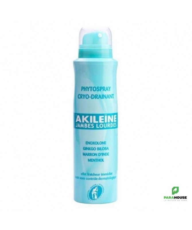DescriptionUn spray rafraîchissant pour des jambes légèresÉlaboré à partir d'un complexe de plantes, le Spray cryo drainant aide à combattre l'insuffisance veineuseet le phénomène de jambes lourdes. L'insuffisance veineuse est causée par un mauvais retour du sang vers le cœur. Le sang stagne dans les membres inférieurs entraînant ainsi des douleurs, des lourdeurs, des impatiences dans les jambes et à plus long terme, l'apparition de varices. L'insuffisance veineuse touche souvent les personnes qui ont des stations debout prolongées mais aussi les femmes enceintes. Le phénomène est d'autant plus marqué lors des périodes de fortes chaleurs en été.Que faire contre les jambes lourdes ?Le Spray cryo drainant Akileïne répond aux besoins des personnes sujettes à une mauvaise circulation veineuse des membres inférieurs par :un effet tonifiant sur les vaisseaux sanguinsun effet rafraîchissant et apaisantun effet drainant pour atténuer les œdèmesun effet vasculo-protecteurun effet de légèretéDes agents actifs qui favorisent la circulation veineusePour vous aider à lutter contre la sensation dejambes lourdes, le Spray cryo drainant Akileïne a été formulé à partir d'ingrédients actifs naturels dont les vertus sur l'insuffisance veineuse sont reconnues depuis longtemps :Le marron d'Inde a de nombreuses propriétés qui permettent d'améliorer la circulation sanguine, notamment un effetanti-inflammatoireetvasoconstricteur. Il favorise le retour veineux et améliore la résorption des œdèmes. Il prévient la stase veineuse, les accidents vasculaires et agit contre la thrombophlébite. Très efficace pour soulager la sensation de jambes lourdes, il permet aussi de lutter contre l'apparition des varices et diminue les crampes nocturnes.Le ginkgo-biloba est composé de flavonoïdes qui sont des principes actifs reconnus pour stimuler la circulation sanguine. Outre sa propriété de tonique veineux, le gingko-biloba possède aussi uneffet anti-coagulantet vasodilatateur. Il est utilisé entre autres dans le traitement contre les jambes lourdes, les varices, les œdèmes des membres inférieurs et l'insuffisance vasculaire cérébrale.Le menthol issu de l'huile essentielle de menthe poivrée procure un effet glaçon sur les jambes et soulage la douleur notamment par une limitation de la dilatation veineuse. Le menthol agit également pour activer la circulation sanguine et renforcer les parois veineuses.L'enoxolone, extrait de la réglisse, est connu pour ses qualités anti-inflammatoires, décongestionnantes et antalgiques.Le Spray cryo drainant Akileïne contribue à lutter contre l'insuffisance veineuseet à soulager lesjambes lourdes.Conseil d'utilisationLe Spray cryo drainant Akileïne s'utilise aussi souvent que nécessaire. Il suffit pour cela de pulvériser le produit sur les jambes en partant de la plante des pieds pour remonter vers les genoux et les cuisses. Le spray ne tache pas et ne colle pas, il peut s'appliquer directement sur la peau ou bien à travers les bas et collants. Il est compatible avec le port de bas de contention. En cas de doute ou pour toutes questions, demandez l'avis d'un professionnel.CompositionFormule INCI : Alcohol Denat., Hydrofluorocarbon 134a, Propylene Glycol, Aqua, Glycyrrhetinic Acid, Ginkgo Biloba, Aesculus Hippocastanum, Parfum (Fragrance), Menthyl Lactate, Menthol, Triclosan, Citronellol, Geraniol, Hexyl Cinnamal, Butylphenyl Methylpropional, Linalool.