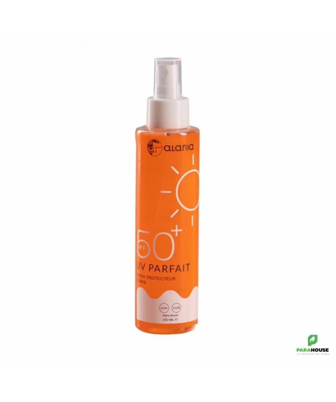 ALANIA UV PARFAIT Spray Protecteur Corps SPF 50+ 150ML ALANIA UV PARFAIT Spray Protecteur Corps SPF 50 protège des rayons du soleil grâce à ses filtres dotés d’une technologie qui offre une protection à large spectre UVA/UVB et prévient le photo-vieillissement cutané prématuré. Sa texture à la fois sèche et huileuse hydrate et pénètre immédiatement pour sublimer le bronzage. La peau est douce, sans fini gras ni collant. Sous forme de spray, ALANIA Spray Protecteur est facile à appliquer. Il suffit de pulvériser sur la peau du corps à distance raisonnable, puis de masser doucement pour que le produit soigneusement réparti. Que votre peau soit sèche, grasse ou mixte, ce spray peut être utilisé. Il ne contient pas d'ingrédients irritants et est doux pour la peau, convenant à une utilisation quotidienne.