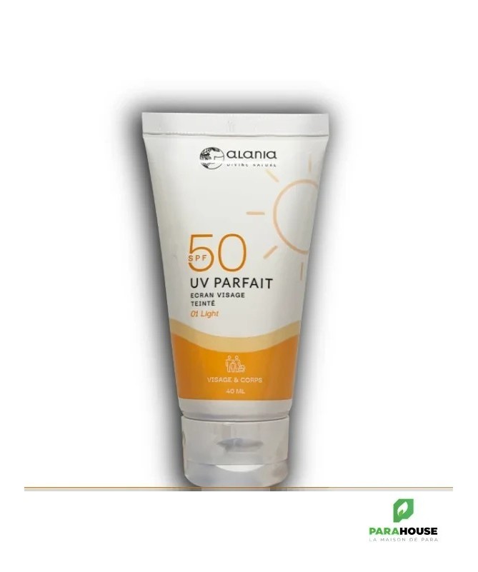 ALANIA UV PARFAIT Ecran Solaire Visage Teinte 40ML - 01 Light ALANIA UV PARFAIT Ecran teinte hydrate la peau, la protège des rayons UVA et UVB avec un facteur de protection de SPF50 et prévient l'apparition de taches brunes. Elle est facile à étaler sur le visage, pénètre rapidement et ne laisse pas d'effet collant. La crème solaire hydratante pour le visage prévient efficacement le vieillissement de la peau et convient à tous les types de peau. Recommandé comme base avant l'application du maquillage. Bienfaits de ALANIA Ecran Solaire : Très haute protection solaire contre les UVA et les UVB grâce à son SPF 50. Soin hydratant Prévient le vieillissement cutanés Adapté à tout types de peaux Texture non collante Peut être utilisé en base de maquillage Composition : Aqua , methylene bis-benzotriazolyl tetramethylbutylphenal , ethylhexyl methoxycinnamate , c12-20 acid ,PEG-8, propylene glycol,butyl methoxydibenzoylmethane , ethylhexyl, stearate , cetearyl alcohol , dimethicone , titanium dioxid , phenoxyethanol , potassium cetyl phosphate, carbomer, tetrasodium ,EDTA,saccharide isomerate,Citric acid ,sodium citrate,tocopherol acetate,retinyl palmitate , decyl glucoside , xanthan gum.triethanolamine,fragrance. Conseils d'utilisation : Il est recommandé d'appliquer le soin solaire ALANIA UV PARFAIT sur le visage et le cou avant chaque exposition au soleil. Renouveler toutes les 2h lors d'une exposition prolongée. Peut être utilisé e base de maquillage. Eviter le contact avec les yeux.
