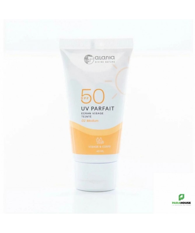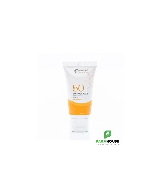ALANIA UV PARFAIT Ecran Solaire Visage Teinte 40ML - 02 Medium ALANIA UV PARFAIT Ecran teinte hydrate la peau, la protège des rayons UVA et UVB avec un facteur de protection de SPF50 et prévient l'apparition de taches brunes. Elle est facile à étaler sur le visage, pénètre rapidement et ne laisse pas d'effet collant. La crème solaire hydratante pour le visage prévient efficacement le vieillissement de la peau et convient à tous les types de peau. Recommandé comme base avant l'application du maquillage. Bienfaits de ALANIA UV PARFAIT Ecran Solaire : Très haute protection solaire contre les UVA et les UVB grâce à son SPF 50. Soin hydratant Prévient le vieillissement cutanés Adapté à tout types de peaux Texture non collante Peut être utilisé en base de maquillage Composition : Aqua , methylene bis-benzotriazolyl tetramethylbutylphenal , ethylhexyl methoxycinnamate , c12-20 acid ,PEG-8, propylene glycol,butyl methoxydibenzoylmethane , ethylhexyl, stearate , cetearyl alcohol , dimethicone , titanium dioxid , phenoxyethanol , potassium cetyl phosphate, carbomer, tetrasodium ,EDTA,saccharide isomerate,Citric acid ,sodium citrate,tocopherol acetate,retinyl palmitate , decyl glucoside , xanthan gum.triethanolamine,fragrance. Conseils d'utilisation : Il est recommandé d'appliquer le soin solaire ALANIA UV PARFAIT sur le visage et le cou avant chaque exposition au soleil. Renouveler toutes les 2h lors d'une exposition prolongée. Peut être utilisé e base de maquillage. Eviter le contact avec les yeux.