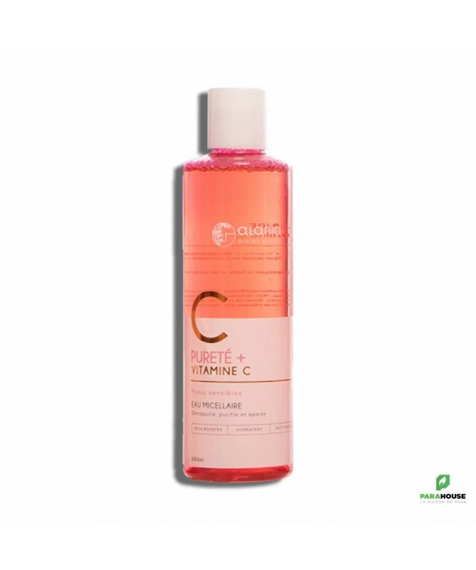 ALANIA PURETE+ VITAMINE C EAU MICELLAIRE ALANIA PURETE+ VITAMINE C EAU MICELLAIRE nettoie en douceur, apaise la peau et désincruste les impuretés pour un teint frais et net à chaque utilisation. Son action skin booster apporte pureté et fraîcheur à votre teint. ALANIA EAU MICELLAIRE est une formule purifiante sans rinçage . Elle offre une action apaisante sur la peau sensible, qui sera hydratée, éclatante et lumineuse. BIENFAITS DE ALANIA PURETE+ VITAMINE C EAU MICELLAIRE : Démaquille, purifie et apaise la peau Antioxydant, skin booster et tonifiant Eclaircissant et anti-tâches Stimule la production de collagène et hydrate Composition : Vitamine C Huile de ricin Extrait de fleur de camomille sauvage Conseil d’utilisation : Il est recommandé d'appliquer l'eau micellaire de ALANIA VITAMINE C à l’aide d’un coton sur tout le visage. Ne pas rincer.