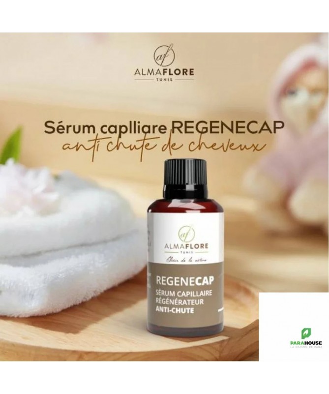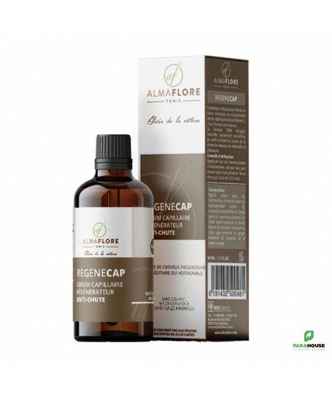 ALMAFLORE REGENECAP Sérum anti chute de cheveux 50ML ALMAFLORE REGENECAP Sérum anti chute de cheveux protège la zone péribulbaire afin de freiner d'une façon rapide la chute et régénérer le cuir chevelu. Il favorise la croissance des cheveux. Régule l’activité de l’enzyme responsable de la chute des cheveux tout en réactivant la micro-circulation cutanée. Composition : L’huile de jojoba, huile de nigelle, huile essentielle de romarin, huile essentielle de sauge sclarée, huile de ricin, Huile essentielle de lavande vraie, huile essentielle de cèdre de l’atlas, huile essentielle de gingembre, huile essentielle d’orange douce, huile essentielle de thym à thymol. Conseil d’usage : S'applique sur cuir chevelu propre une nuit sur deux Mélanger et appliquer raie par raie à la racine des cheveux. Il est indiqué de bien masser ALMAFLORE REGENECAP Sérum anti chute de cheveux pour faire pénétrer. Ne se rince pas. Cure de 4 à 6 mois Contre- indication : Il est contre indiqué pour les femmes enceintes ou allaitantes Flacon de 50 ml pour une cure de 3 mois