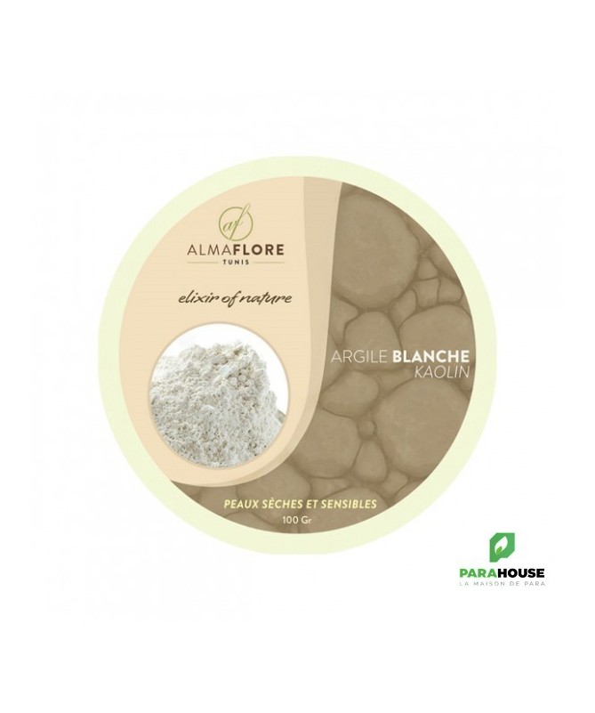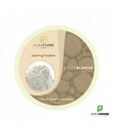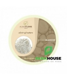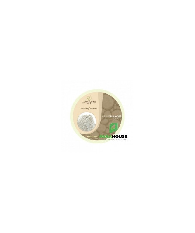 ALMAFLORE Argile Blanche ou Argile Kaolin ALMAFLORE Argile Blanche est une argile kaolin de haute pureté, reconnue pour ses propriétés douces et revitalisantes. Idéale pour les peaux sèches et matures, elle nettoie en profondeur sans agresser, tout en restaurant l’hydratation et en luttant contre les signes de l’âge. Sa texture fine et veloutée, facile à appliquer, convient même aux épidermes les plus fragiles. Bienfaits de l’Argile Blanche pour la peau : Anti-rides naturel : Grâce à sa teneur élevée en silice, elle stimule la production de collagène et atténue visiblement les ridules et rides. Hydratation intense : Elle préserve le film hydrolipidique de la peau, idéale pour les peaux sèches ou déshydratées. Purification douce : Absorbe les impuretés et l’excès de sébum sans dessécher l’épiderme. Apaisante et rééquilibrante : Calme les irritations et les rougeurs, même sur les peaux sensibles. Éclat immédiat : Uniformise le teint et laisse la peau douce, lumineuse et revitalisée. Types de Peaux : L’argile blanche ALMAFLORE est particulièrement recommandée pour : Peaux sèches et très sèches : Elle nourrit et hydrate durablement. Peaux matures : Elle lutte contre le relâchement cutané et les signes de l’âge. Peaux sensibles ou réactives : Son action non abrasive respecte l’équilibre de la peau. Teint terne ou fatigué : Pour un coup d’éclat immédiat et naturel. Bienfaits de l’Argile Blanche pour les Cheveux : Nettoyante en profondeur : Absorbe l'excès de sébum et les impuretés Purifiante du cuir chevelu : Convient à tous types de cheveux et cuirs chevelus Équilibre naturel : Respecte l'équilibre du cuir chevelur sans le dessécher Autres Utilisations : Support cosmétique : Texture surfine idéale pour les poudres libres Abrasif doux : Pour les soins buccaux et dentifrices maison Épaississant naturel : Pour les pâtes dentifrices et masques