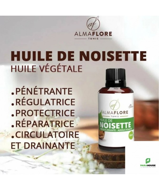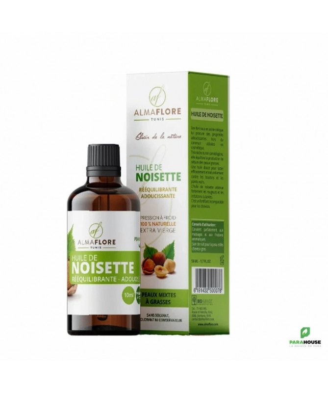 ALMAFLORE Huile de Noisette BIO 50ML Régulation Sébum : Son action astringente naturelle resserre les pores et régule la production de sébum pour une peau matifiée et équilibrée durablement. Action Purifiante & Anti-points Noirs : Elle nettoie les pores en profondeur, aide à dissoudre et prévenir l'apparition des points noirs et des microkystes. Barrière Protectrice & Hydratante : Bien que légère, elle forme un film protecteur invisible qui prévient la déshydratation en limitant l'évaporation de l'eau de la peau. Texture Non Grasse & Pénétrante : Contrairement aux idées reçues sur les huiles, celle-ci est très rapidement absorbée, ne laissant aucune sensation de gras, uniquement un toucher doux et soyeux. 100% Naturelle & Non Comédogène : Certifiée non comédogène (indice 0), elle ne bouche pas les pores et est parfaitement tolérée par les peaux les plus sensibles et à tendance acnéique. Régénérante & Cicatrisante : Elle favorise la régénération du film hydrolipidique cutané et accélère la cicatrisation des petites imperfections, pour une peau plus saine et uniforme.