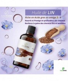 ALMAFLORE Huile de Lin BIO 50ML L'huile de lin se présente comme une huile miraculeuse vue ses multiples actions. C'est un laxatif naturel puisqu'elle est trés riche en fibre (A prendre de temps en temps, de 5 ml à 10 ml (1 à 2 c. à thé). Elle est trés efficace contre les affections de la peau (psoriasis et eczéma). Elle régule le système hormonal des femmes lors de la période de ménopause. Elle agit comme un lubrifiant naturel pour les articulations malades. Elle a une action cicatrisante. ALMAFLORE Huile de Lin traite les brûlures. ALMAFLORE Huile de Lin rend les cheveux très brillants. Hydratation Intense : Pénètre rapidement pour nourrir et reconstituer les réserves lipidiques des peaux très sèches et déshydratées. Action Apaisante et Régénérante : Aide à calmer les irritations légères et soutient la régénération naturelle de la barrière cutanée. Anti-âge Naturel : Riche en antioxydants (vitamine E), elle aide à lutter contre les radicaux libres et à atténuer les signes de l’âge comme les ridules. Revitalisation Capillaire : Redonne souplesse, brillance et vitalité aux cheveux secs, cassants ou frisés, et aide à discipliner les pointes fourchues.