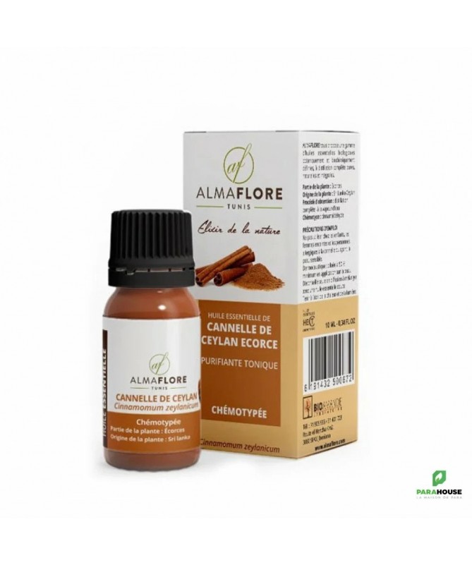 ALMAFLORE Huile Essentielle de cannelle de ceylan Bio 10ML - Anti-infectieuse Puissante ALMAFLORE Huile Essentielle de cannelle est une huile antivirale, anti-infectieuse générale à savoir des infections respiratoires, gynécologiques, cystites, buccales, cutanées et gastro-intestinales. Action Anti-infectieuse Large Spectre : elle exerce une activité antibactérienne, antivirale, antifongique et antiparasitaire puissante. Soutien de l’Immunité : Elle agit comme un tonique général stimulant les défenses naturelles de l’organisme, idéale en prévention ou pour accompagner la convalescence. Bien-être Digestif : Contribue à lutter contre les fermentations intestinales et les inconforts digestifs passagers Stimulante et Réconfortante : Son arôme chaud et son action tonique physique et psychique aident à combattre la fatigue, à redonner de l’énergie et du moral. Précautions d’emploi : Dermocaustique : Cette huile essentielle est très irritante pour la peau et les muqueuses. Elle doit IMPÉRATIVEMENT être diluée à un maximum de 5% (voire moins) dans une huile végétale avant toute application cutanée. Effectuez toujours un test dans le pli du coude 24h avant utilisation. Contre-indications : Déconseillée aux femmes enceintes (surtout au 1er trimestre) et allaitantes , aux enfants de moins de 12 ans, aux personnes souffrant de problèmes hépatiques graves ou sous traitement anticoagulant . Ne pas utiliser pure. Éviter le contact avec les yeux et les muqueuses. Consultez un professionnel de santé ou un aromathérapeute avant toute utilisation thérapeutique, surtout en cas de pathologie existante ou de traitement médical.