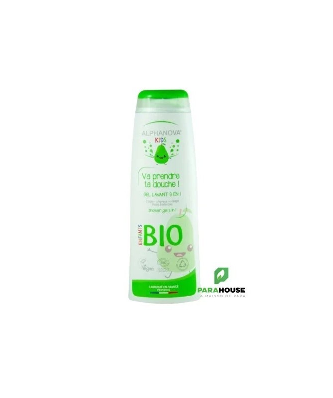 Ce gel lavant nettoie en douceur les cheveux, le visage et le corps sans agresser la peau, grâce à sa formule ultra-douce.Utilisation facile :Verse un peu de gel dans ta main, fais mousser sur tes cheveux, ton corps et ton visage. Le gel se transforme en mousse onctueuse avec un parfum délicat de poire. Rince à l'eau tiède pour laisser ta peau propre et douce. En cas de contact avec les yeux, rince abondamment à l'eau claire.Composition :- Aqua, Sodium coco-sulfate, Glycérine, Eau de fleurs d'Anthemis nobilis*, Lauryl glucoside, Decyl glucoside, Parfum, Extrait de fruit de Pyrus communis*, Eau de fruit d'Actinidia chinensis*, Poudre de jus de feuille d'Aloe barbadensis*, Cocamidopropyl betaine, Coco-glucoside, Glyceryl oleate, Sodium benzoate, Potassium sorbate, Acide citrique, Chlorure de sodium, Tocophérol, Citrate de glycérides de palme hydrogénés.*Ingrédients issus de l’agriculture biologique.98,8 % du total des ingrédients sont d’origine naturelle.20,9 % du total des ingrédients sont issus de l’agriculture biologique.Conseils d’utilisation :Pour te laver tout seul, verse un peu de gel dans ta main et fais mousser sur tes cheveux, ton corps et ton visage. Le gel se transforme en mousse douce avec un parfum agréable de poire. Rince à l'eau tiède et profite d'une peau propre et douce. Si le produit entre en contact avec les yeux, rince abondamment à l'eau claire.