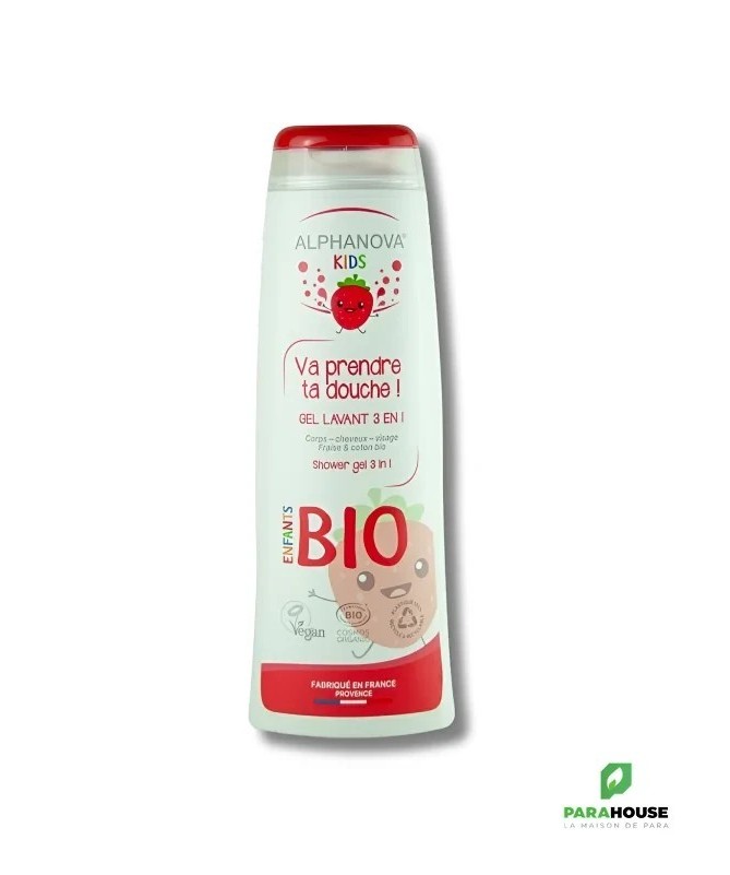 Va Prendre Ta Douche FraiseFais connaissance avecThérèse la FraiseetLéon le Coton: deux ingrédients naturels et biologiques auxpouvoirs adoucissantsqui transforment ta douche en un moment de plaisir. Cegel lavant douxnettoie cheveux, visage et corps sans agresser la peau.Mode d'emploiVerse un peu de gel lavant dans ta main, fais mousser sur tes cheveux, ton corps et ton visage. La mousse onctueuse au délicat parfum de fraise laisse ta peau propre et douce. Rince à l’eau tiède. En cas de contact avec les yeux, rincer immédiatement à l’eau claire.CompositionAqua, Sodium coco-sulfate, Glycerin, Anthemis nobilis flower water*, Lauryl glucoside, Decyl glucoside, Parfum, Fragaria vesca fruit extract*, Gossypium herbaceum extract*, Aloe barbadensis leaf juice powder*, Calendula officinalis flower extract*, Tropaeolum majus extract, Cocamidopropyl betaine, Coco-glucoside, Glyceryl oleate, Sodium benzoate, Potassium sorbate, Citric acid, Sodium chloride, Tocopherol, Hydrogenated palm glycerides citrate, Limonene.*Ingrédients issus de l’agriculture biologique.98,8 % du total sont d’origine naturelle.16 % du total des ingrédients sont issus de l’agriculture biologique.CertifiéCOSMOS ORGANICpar ECOCERT Greenlife selon le référentiel COSMOS :http://COSMOS.ecocert.comConseils d’utilisationPour te laver facilement : verse un peu de gel lavant dans ta main, fais mousser sur tes cheveux, ton corps et ton visage. La mousse onctueuse au parfum de fraise nettoie en douceur. Rince à l’eau tiède. En cas de contact avec les yeux, rincer immédiatement.