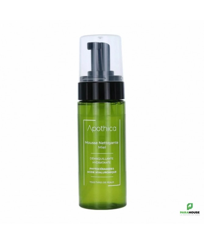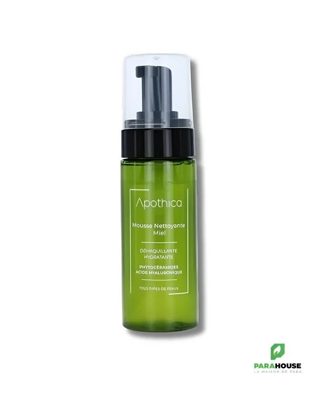 APOTHICA MOUSSE NETTOYANTE MIEL 150ML APOTHICA MOUSSE NETTOYANTE MIEL à base de miel d’eucalyptus sauvage,collagène et vitamine E, lutte contre les premières rides et ridules, lisse, purifie et hydrate la peau. Pour une peau nette et bien nettoyée, la mousse Apothica est faite pour vous ! Elle convient à tous types de peaux grâce à sa formule équilibrée. Composition : Aqua, Mel, Aloe vera barbadensis leaf extract, Tocophérol, Glycerin, Xanthan gum, Hydrolyzed Collagen, Benzyl Alcohol, Benzoat Sodium, Sorbat potassium, Déhydroacetic acid, Citric acid. Conseils d'utilisation : Appliquer APOTHICA MOUSSE NETTOYANTE sur un visage légèrement humide, effectuer des mouvements circulaires puis lavez à l'eau.