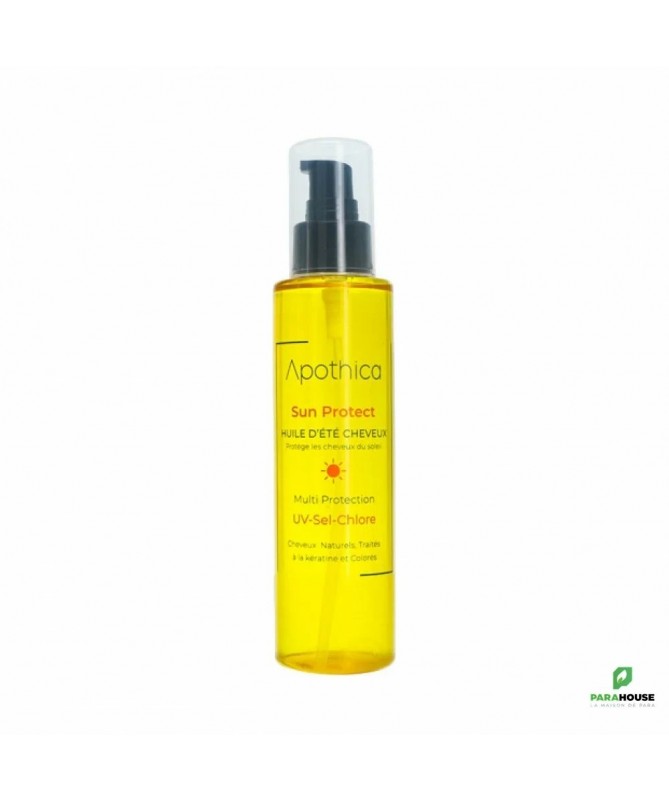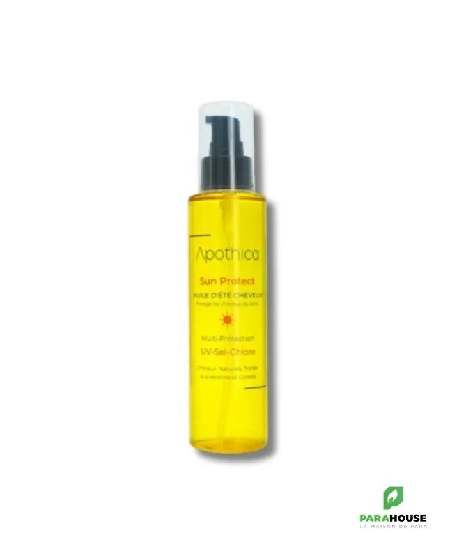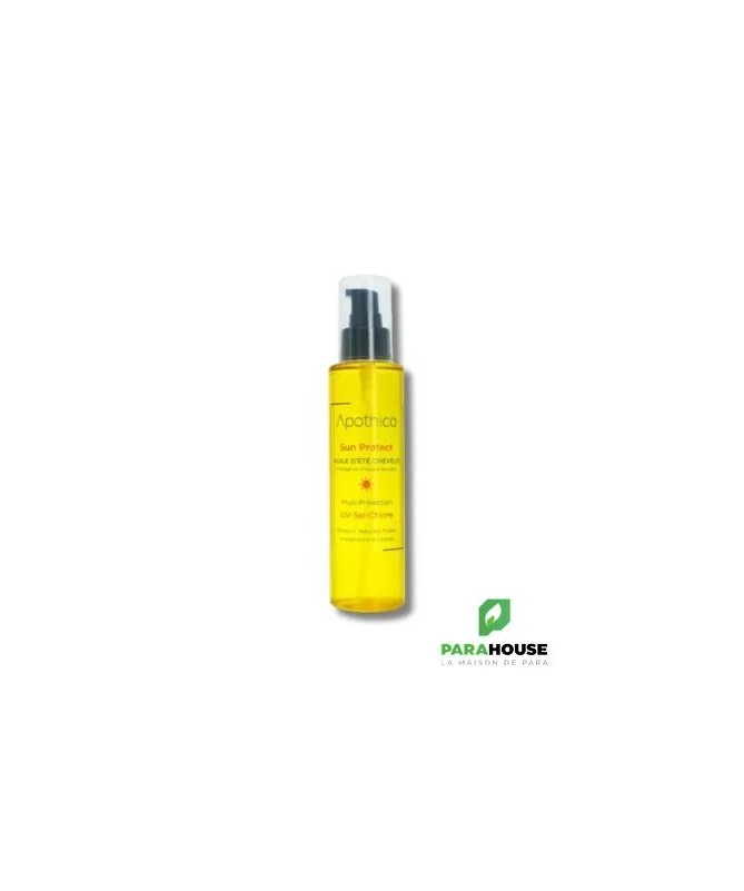 Huile Solaire d'Été Apothica - Protection Cheveux Anti-UVL'huile solaire d'été de la marque Apothica offre une protection efficace contre les effets néfastes du soleil sur vos cheveux. Elle crée un écran filtrant pour protéger vos cheveux des rayons UV pendant une exposition prolongée. En petites doses, le soleil a des effets bénéfiques en stimulant la production de vitamine D, essentielle à la fixation du calcium sur les cheveux.La chaleur du soleil favorise également la micro-circulation du cuir chevelu, améliorant l'irrigation des follicules pileux, ce qui explique pourquoi les cheveux ont tendance à pousser plus rapidement en été.Cependant, une exposition excessive peut avoir des effets indésirables, tels que l'assèchement du cuir chevelu, la casse des cheveux et la perte de brillance. Cette huile solaire Anti-UV, non allergène, protège efficacement vos cheveux tout en résistant à l'eau de mer et à celle de la piscine grâce à sa formule waterproof.Apothica propose également l’Écran Solaire Pour Les Cheveux 150 ml pour une protection naturelle et non grasse.Conseils d'utilisation :Appliquez sur cheveux secs avant la baignade pour protéger et gainer vos cheveux.