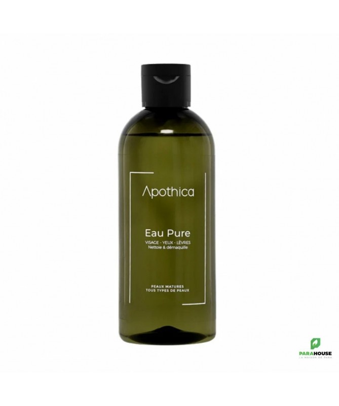 APOTHICA EAU PURE DEMAQUILLANTE 250ML APOTHICA EAU PURE DEMAQUILLANTE est anti-âge, nettoyante et démaquillante, elle convient à tous types de peaux grâce à sa formule équilibrée en néroli, eau de rose, collagène et vitamine E. Complexe vitamine E - Collagène : effet lift instantané Eau de rose -néroli : Tenseur+hydratant Aloe vera -Glycérine : humectant Composition : Aqua, Rosa damascena flower water, Citrus aurantium flower water, Hydrolyzed Collagen, Cocamidopropyl betain, Glycerin, Sodium benzoat, Tocopherol,citric acid, PEG 40 hydrogenated, Castor oil, Capric/CarprilycTriglycerides. Conseils d'utilisation : Appliquer APOTHICA EAU DEMAQUILLANTE matin et/ou soir à l'aide d'un coton disque sur tout le visage soit pour le démaquillage ou pour un nettoyage doux pour se débarrasser de la pollution installée sur la peau pendant toute la journée.