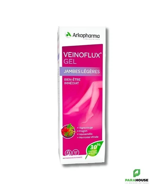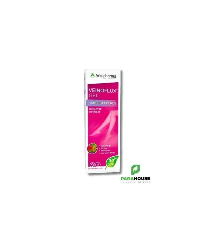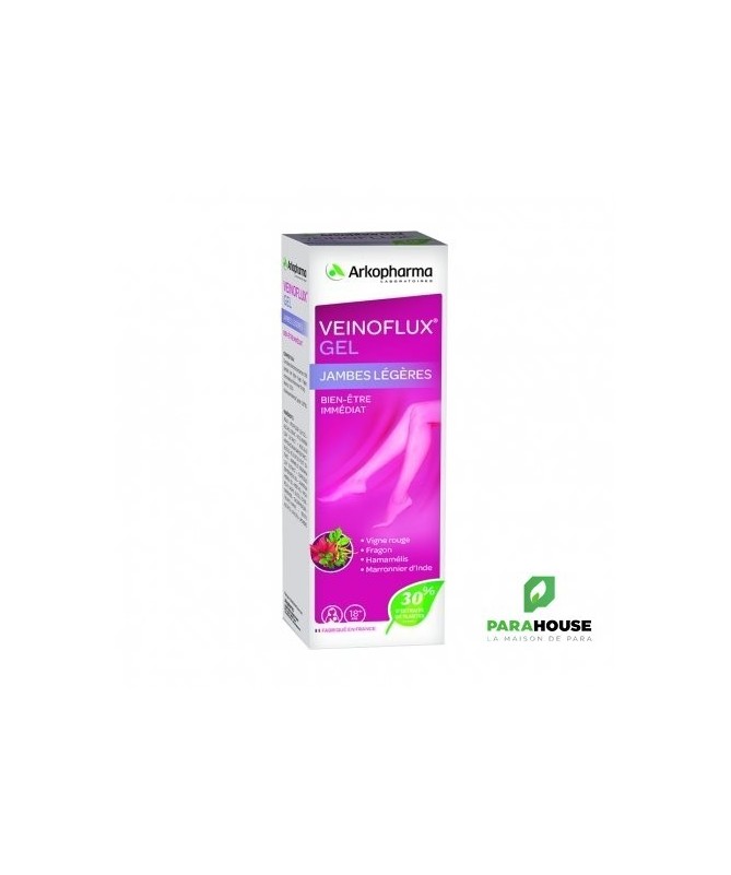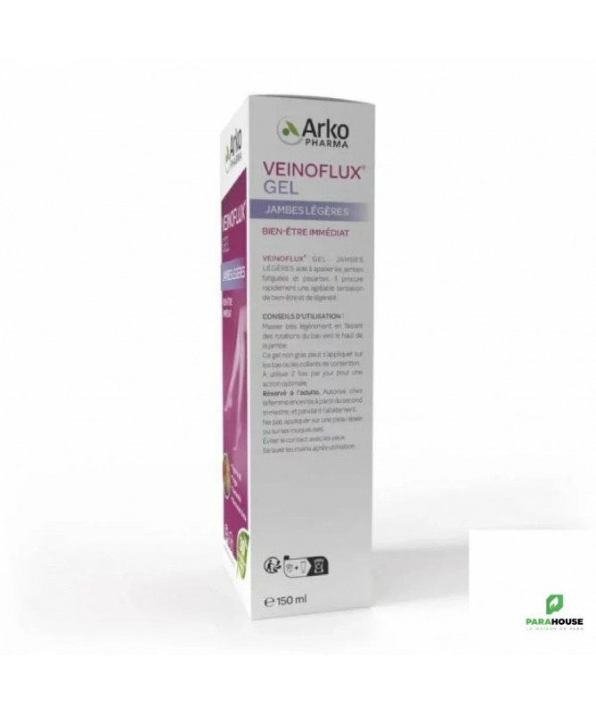 ARKOPHARMA VEINOFLUX JAMBES LEGERES 150ML VEINOFLUX JAMBES LEGERES permet de soulager les jambes fatiguées et pesantes. Ce gel de Arkopharma procure rapidement une agréable sensation de bien-être et de légèreté et se compose d’un complexe d’extraits de plantes, de menthol et d’huile essentielle de Cyprès. Composition : Ingrédients: Extrait de peau et pépin de fruit de Vigne rouge (Vitis vinifera L.) - Extrait de zeste de Citron (Citrus limonum (L.) Burm. F.) titré à 35% en flavonoïdes - Extrait de racine de Fragon (Ruscus aculeatus L.) - Fibres de pomme (Malus domestica Borkh.) - Extrait de partie aérienne de Reine-des-prés (Filipendula ulmaria (L.) Max.) - Agent de charge : phosphate de calcium - Antiagglomérant : stéarate de magnésium - Vitamine B2. Complexe d’extraits de plantes : 30% (extraits de Vigne rouge, Fragon, Hamamélis et Marronnier d’Inde) Menthol : 0,2 % Huile essentielle de Cyprès : 0,075% Conseils d'utilisation : Il est conseillé de : Masser très légèrement en faisant des rotations du bas vers le haut de la jambe. À utiliser 2 fois par jour pour une action optimale. À noter : ce gel non gras peut s’appliquer sur les bas ou les collants de contention. Recommandations d'usage Autorisé chez la femme enceinte à partir du second trimestre, et pendant l’allaitement. Ne pas appliquer sur une peau lésée ou sur les muqueuses. Éviter le contact avec les yeux. Se laver les mains après utilisation.