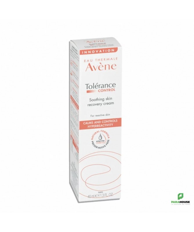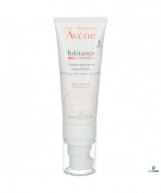 AVENE TOLERANCE CONTROL Creme Apaisante Restauratrice 40ML AVENE TOLERANCE CONTROL Crème super apaisante est enrichie de 98% d'ingrédients naturels, non comédogène. Elle apaise la peau en 30 secondes et réduit définitivement l'inconfort de la peau. La crème réparatrice apaisante AVENE Tolerance Control (formulée avec D-Sensinose™, un nouvel actif postbiotique), est une crème apaisante pour les peaux hypersensibles, réactives et intolérantes. En seulement 30 secondes, elle calme les sensations de chaleur, de tiraillement, de picotement et d'inconfort. La peau est intensément hydratée et sa barrière restaurée en 48 heures. Ce soin est sans parfum et sans conservateur ajouté. Bénéfices : CALME la peau en 30 secondes grâce au D-Sensinose™ ultra-calmant. HYDRATE 24h et RESTAURE la barrière cutanée en 48h grâce à sa composition 100% biomimétique de la peau. CONTRÔLE durablement l'hyper-réactivité cutanée. Dès la première application : -70% d'irritabilité cutanée -92% d'inconfort Composition : AVENE THERMAL SPRING WATER (AVENE AQUA). CAPRYLIC/CAPRIC TRIGLYCERIDE. ETHYLHEXYL PALMITATE. GLYCERIN. CETEARYL ALCOHOL. SQUALANE. CETEARYL GLUCOSIDE. CETYL ESTERS. AQUAPHILUS DOLOMIAE EXTRACT FILTRATE. ARGININE. BEESWAX (CERA ALBA). CITRIC ACID. TROMETHAMINE. WATER (AQUA). XANTHAN GUM. Conseils d'utilisation : Il est conseillé d'appliquer matin et soir sur le visage, le cou et le contour des yeux. Des gestes doux ne pas réactiver la sensibilité cutanée: Commencez par étaler la crème entre les doigts Déposez-la par touches sur le visage et le cou Etalez en lissant délicatement du bout des doigts du centre vers les contours du visage sans oublier le cou