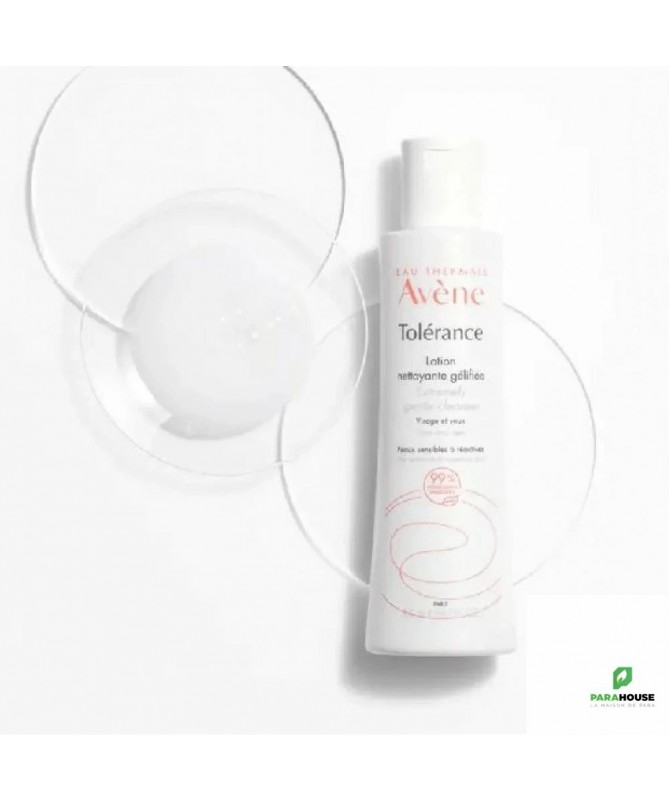 AVENE TOLÉRANCE LOTION NETTOYANTE GÉLIFIÉE 200ML AVENE TOLÉRANCE LOTION NETTOYANTE GÉLIFIÉE est une lotion nettoyante de texture anti-irritation et anti-dessèchement pour les peaux sensibles à réactives. Sa formule d'origine naturelle à 99% et sa texture anti-desséchante protègent la barrière cutanée, empêchant la déshydratation et apaisant les zones sensibles. AVENE TOLÉRANCE LOTION NETTOYANTE GÉLIFIÉE est un démaquillant nettoyant sans parfum et sans rinçage. Sa texture légèrement gélifiée garantit confort et douceur aux peaux les plus sensibles. Sa formule enrichie en agents apaisants a été tolérée sur des peaux sujettes à des intolérances. Composition : AVENE THERMAL SPRING WATER (AVENE AQUA). CETEARYL ALCOHOL. AQUAPHILUS DOLOMIAE EXTRACT FILTRATE. ARGININE. CAPRYLYL GLYCOL. COCO-GLUCOSIDE. DISODIUM PHOSPHATE. HYDROXYCAPRIC ACID. MAGNESIUM OXIDE. POTASSIUM PHOSPHATE. SODIUM BENZOATE. SODIUM CETEARYL SULFATE. SODIUM HYDROXIDE. TROMETHAMINE. WATER (AQUA) Conseils d'utilisation : Il est conseillé d'appliquer AVENE TOLÉRANCE LOTION NETTOYANTE GÉLIFIÉE sur le visage, les yeux et les lèvres à l'aide d'un coton ou directement avec le bout des doigts. Sans rinçage. Pour nettoyer en douceur: Appliquez du bout des doigts en massant légèrement. Eliminez délicatement et sans frotter, à l’aide d’un mouchoir ou d'un coton humide. Terminez par une pulvérisation d'Eau thermale d'Avène. Séchez délicatement.
