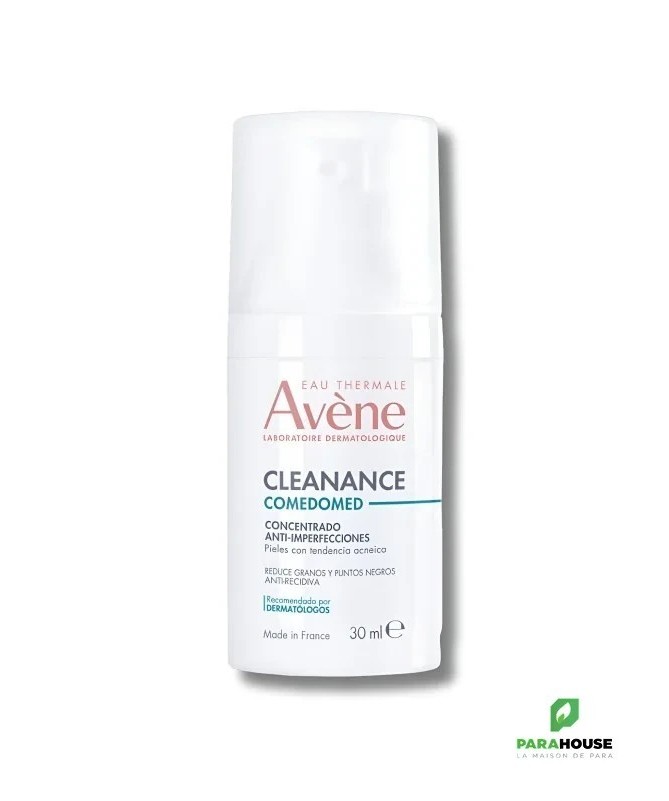 AVENE CLEANANCE COMEDOMED Concentre Anti-Imperfections AVENE CLEANANCE COMEDOMED Concentré Anti-Imperfections est un soin indiqué pour assurer l'élimination des boutons, points noirs et limiter l'apparition de nouvelles imperfections. AVENE Concentré Anti-Imperfections est destiné aux peaux à tendance acnéique ; il permet non seulement de traiter les boutons existants mais aussi d'inhiber la formation de micro-comédons grâce à son effet comedo-reverse et anti-récidive. AVENE COMEDOMED a prouvé une efficacité anti-imperfections dès 7 jours avec une peau nettement améliorée et matifiée tout au long de la journée et des pores bien resserrés. Bénéfices : EFFICACITÉ cliniquement démontrée. Réduit tout type d'imperfections des peaux à tendance acnéique, grâce à la Comedoclastin qui agit à la racine des boutons pour les réduire et limiter leur réapparition. Sa texture aqueuse légère pénètre rapidement, en favorisant son application, et laisse la peau souple, hydratée et matifiée sur la durée. ACTION RAPIDE ET ANTI-RECIDIVE : Cleanance Comedomed, à l'efficacité clinique prouvée, réduit les boutons dés sept jours* et évite leur récidive. Pour une peau plus nette et un meilleur confort au quotidien. HAUTE TOLÉRANCE : Cleanance Comedomed présente une haute tolérance, qu'il soit utilisé seul, en association ou en relais des traitements médicamenteux (hors isotrétinoine orale). Sa formule non comédogène est sans parfum. Une texture aqueuse et légère à absorption rapide et au fini non-gras qui laisse la peau nette et matifiée Composition : Ingrédients : Avene Thermal Spring Water (Avene Aqua), Isopropyl Alcohol, Peg-6, Glycerin, Silybum Marianum Fruit Extract, Silica, Polyacrylate-13, Polyisobutene, Polysorbate 20, Sorbitan Isostearate, Water (Aqua). Conseils d'utilisation : Il est conseillé d'appliquer AVENE CLEANANCE COMEDOMED sur tout le visage matin et soir. Commencez en déposant AVENE COMEDOMED par touches sur la zone T et les joues. Faites pénétrer par des mouvements circulaires. Terminez en lissant sur les joues et le bas du visage.