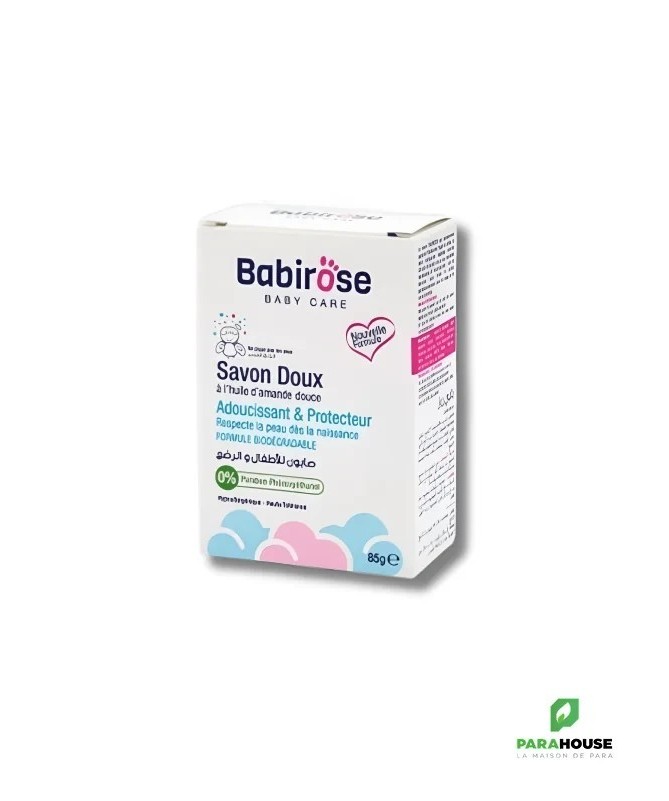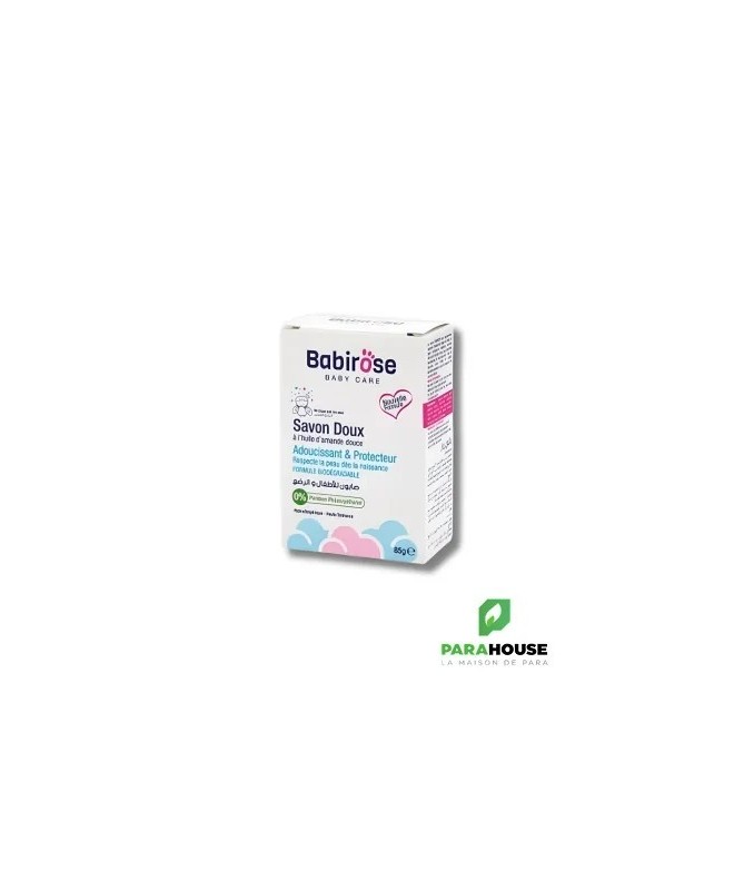 Babirose Savon Doux 85g: Formulé avec de l'huile d'amande douce, ce savon adoucissant et protecteur respecte la peau de bébé dès la naissance. Il nettoie en douceur tout en préservant l'hydratation naturelle de la peau, offrant ainsi un soin délicat pour les tout-petits.
