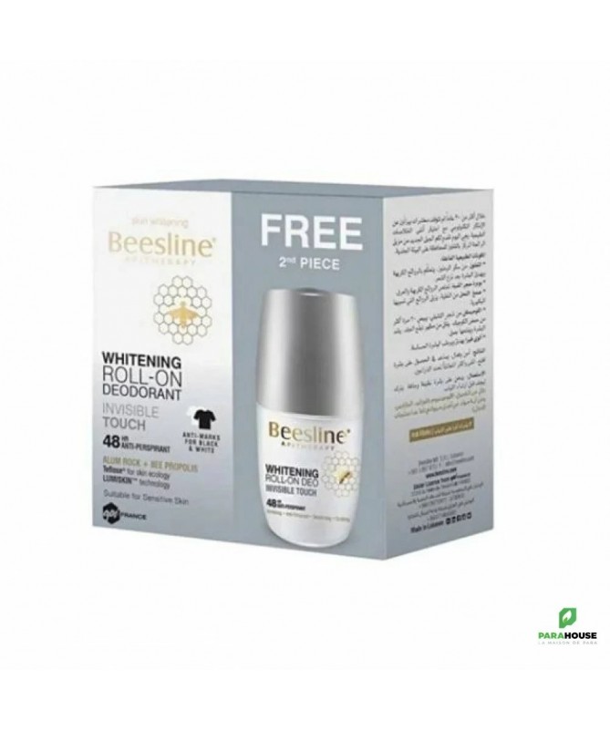 BEESLINE COFFRET Deodorant Eclaircissant Invisible Touch 2X BEESLINE Deodorant Eclaircissant Invisible Touch Roll-On - 50ML ( 1 OFFERT ) : BEESLINE INVISIBLE TOUCH Deodorant Eclaircissant est un déodorant anti-transpirant 48 heures innovant, sûr et très efficace qui combat les odeurs corporelles, absorbe l'humidité et apaise la peau tout en éclaircissant et unifiant le teint pour des aisselles propres et lumineuses. BEESLINE INVISIBLE TOUCH Deodorant Eclaircissant pour des VÊTEMENTS ANTI-TACHES