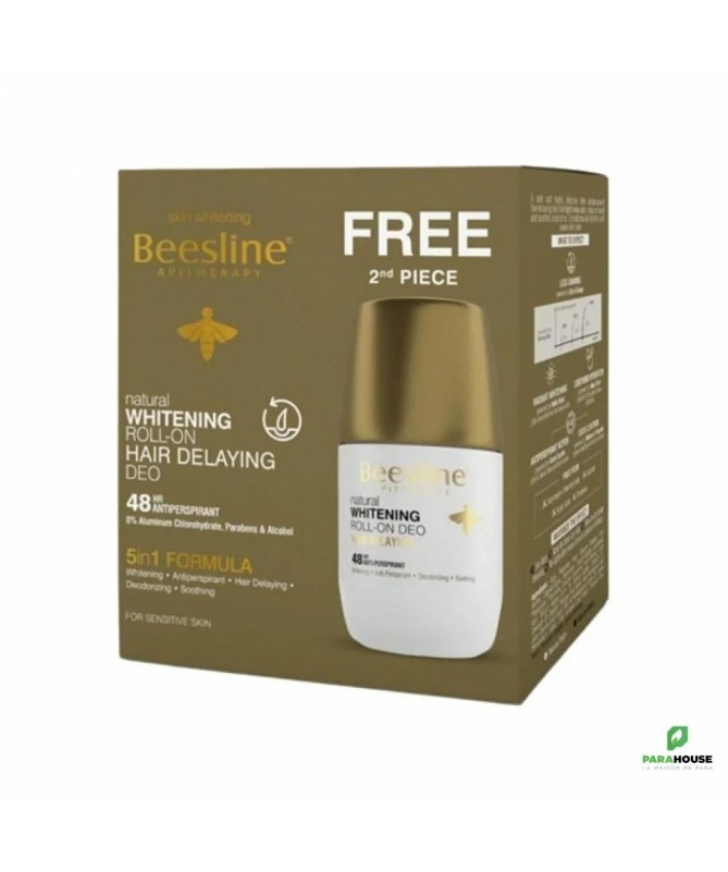 BEESLINE COFFRET Deodorant Anti Repousse Ce coffret se compose de : 2X BEESLINE Deodorant Eclaircissant Sans Parfum Roll-On - 50ML (1 Gratuit) BEESLINE Deodorant Eclaircissant Sans Parfum est un déodorant eclaircissant anti-transpirant 48 heures innovant, sûr et très efficace qui combat les odeurs corporelles, absorbe l'humidité et apaise la peau tout en éclaircissant et unifiant le teint pour des aisselles fraîches et lumineuses. BEESLINE Anti Repousse eclaircit simultanément la peau et retarde la croissance des poils indésirables, pour des aisselles propres et lumineuses.
