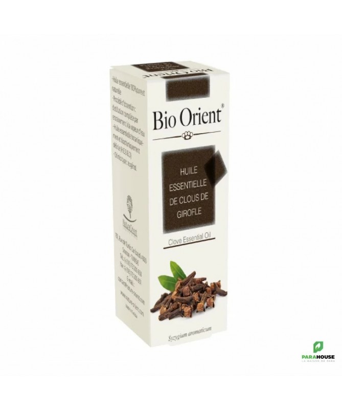BIO ORIENT Huile essentielle de Clou de Girofle 10ML PROPRIÉTÉS DE SANTE BIO ORIENT Huile essentielle de Clou de Girofle est une huile anti-infectieuse, antivirale, antibactérienne puissante, antifongique, antiparasitaire. Cette huile se caractérise par son action stimulante immunitaire. Elle est anesthésiante et antiseptique. PROPRIÉTÉS DE BIEN ETRE Elle est stimulante générale et neurotonique.