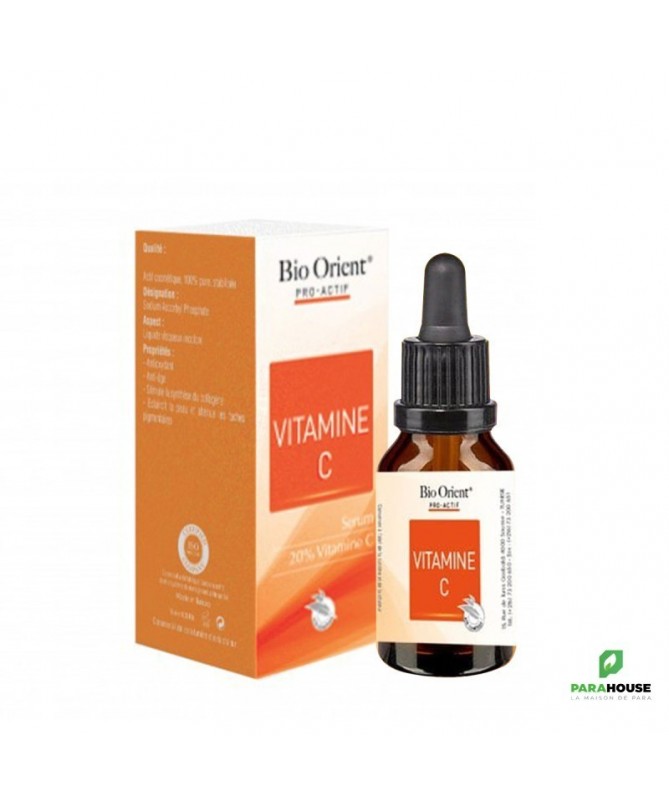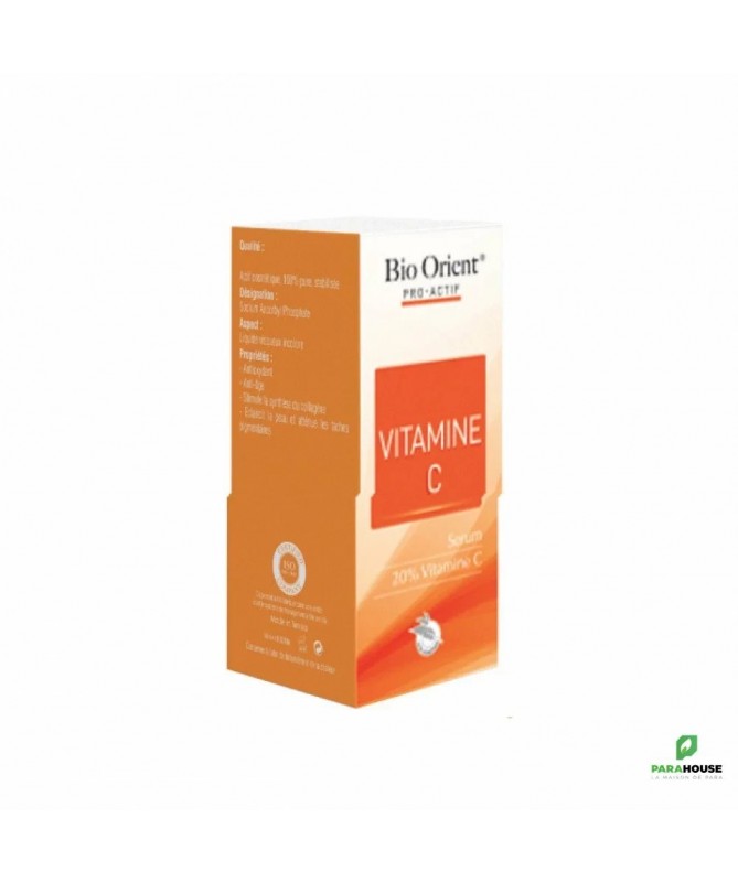BIO ORIENT PRO ACTIF VITAMINE C 10ML BIO ORIENT PRO ACTIF VITAMINE C est un soin pour les peaux qui ont besoin d'un coup d'éclat. Ce produit est un sérum qui va améliorer la texture l'élasticité de la peau. Il aidera à combattre les rides et les taches de vieillesse et à augmenter les défenses de la peau contre les radicaux libres et les agresseurs environnementaux. C’est un actif anti-âge et antioxydant d’exception, la vitamine C stimule la synthèse du collagène, protège les cellules des effets des radicaux libres et unifie le teint. Sous forme stabilisée, elle garantit une activité constante dans vos formules de soins anti-âge, soin éclaircissants et anti-taches.