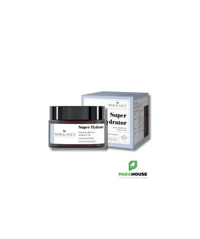 Biobalance Super Hydratant Céramide & Vitamine FCette crème hydratante légère et à absorption rapide associe 0,2 % decéramide NPà 1 % devitamine Fpour restaurer la barrière cutanée et maintenir une hydratation intense. Enrichie en acides gras oméga-6 et oméga-3, elle convient parfaitement aux peaux sèches, très sèches et sensibles.Bienfaits :- Hydratation intensive et durable- Renforcement de la barrière cutanée- Apaisement immédiat et élasticité améliorée- Texture légère, non grasse, à absorption rapideActifs principaux :- Céramide NP 0,2 % :Aide à retenir l’eau, protège et restaure la barrière cutanée- Vitamine F 1 % :Riche en acides linoléique et linolénique, elle nourrit et hydrate profondémentConseils d'utilisation :Appliquer matin et soir sur une peau propre et sèche, sur le visage et le cou.Composition :Aqua, Glycerin, Caprylic/Capric Triglyceride, Coco-Caprylate/Caprate, Glyceryl Stearate, Butylene Glycol, Cetearyl Alcohol, Polyglyceryl-6 Palmitate/Succinate, Ceramide NP, Linoleic Acid, Linolenic Acid, Acacia Senegal Gum, Xanthan Gum, Tocopherol, Tetrasodium Glutamate Diacetate, Sorbitan Caprylate, Propanediol, Benzoic Acid.
