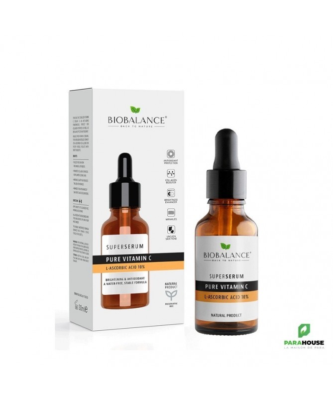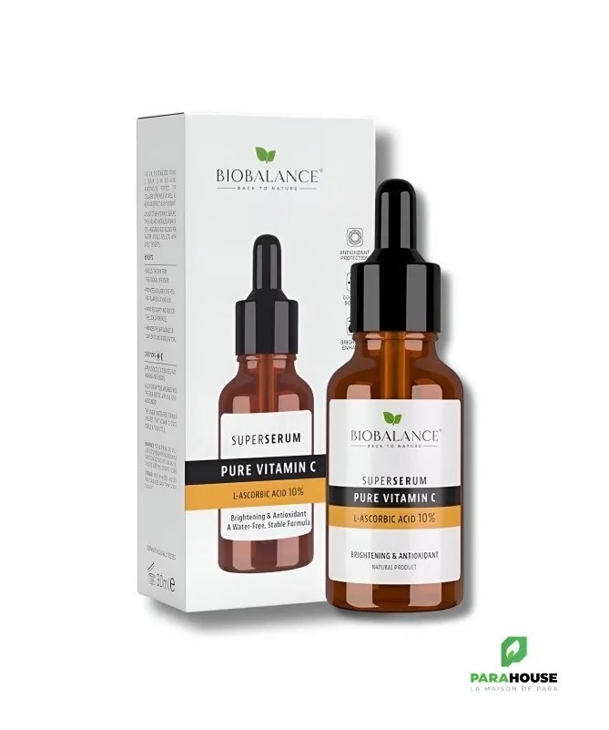 Sérum à 10 % de Vitamine C StabiliséeCe sérum hautement concentré à 10 % de vitamine C stabilisée est conçu pour offrir des résultats rapides et visibles en termes d'anti-âge. Sa formule sans eau avec de l'acide L-ascorbique pur protège la peau des radicaux libres, stimule la synthèse du collagène, et améliore l'apparence générale de la peau.- Protège des radicaux libres: Un puissant antioxydant qui défend la peau contre les agressions extérieures.- Stimule la production de collagène: Pour une peau plus ferme et rebondie.- Améliore la clarté et réduit les rides: Lutte contre les signes visibles du vieillissement.- Réduit l'apparence des taches brunes et des décolorations: Unifie le teint et donne un éclat naturel.Mode d'emploi :Appliquer une petite quantité de sérum directement sur le visage nettoyé, matin et soir. Laissez-le être absorbé avant d'appliquer votre crème hydratante.