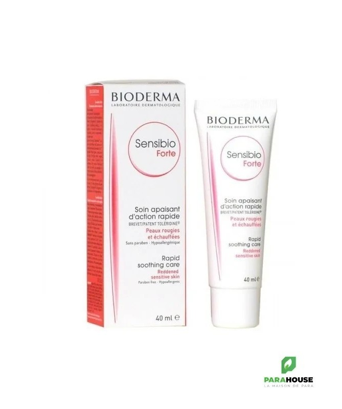 Bioderma Sensibio Forte 40ML - Le soin apaisant qui soulage rapidement et durablement les peaux agressées. Sensibio Forte permet de soulager rapidement les manifestations réactives biologiques liées à l'inflammation (frottements, feu du rasoir, épilation, peelings, post-laser, érythèmes solaires) et d'augmenter le seuil de tolérance de l’épiderme. Les actifs apaisants, association d'enoxolone en forte concentration et d'allantoïne, soulagent rapidement les manifestations réactives comme les rougeurs et l'échauffement de l’épiderme. Le complexe naturel breveté D.A.F. (Dermatological Advanced Formulation) diminue la réactivité cutanée. La cire d'abeille et le xylitol, agents hydratants et humectants de Sensibio Forte, luttent contre la déshydratation cutanée qui accompagne souvent l'état irritatif et restaurent ainsi durablement le confort de la peau. Hypoallergénique Résultats immédiats : Peau hydratée : 100 % Peau apaisée : 95 % Composition : Water (aqua), stearic acid, carbomer, beeswax (cera alba), propylene glycol, cetyl alcohol, glycyrrhetinic acid, glyceryl stearate, mineral oil (paraffinum liquidum), sorbitan sesquioleate, rhamnose, tocopheryl acetate, allantoin, fructooligosaccharides, Laminaria Ochroleuca extract, mannitol, xilitol, sodium PCA, triethanolamine, caprylic/ capric triglyceride, butylparaben, propylparaben, methylparaben, ethylparaben Formule sans parfum Conseils d’utilisation : IL est recommandé de l'appliquer Bioderma Sensibio Forte Matin et soir voire 3 fois par jour en cas de rougeurs et/ou d'échauffements intenses Appliquez Sensibio Forte sur une peau nettoyée, idéalement avec Sensibio H2O ou Sensibio H2O AR. Espacez les applications dès amélioration.